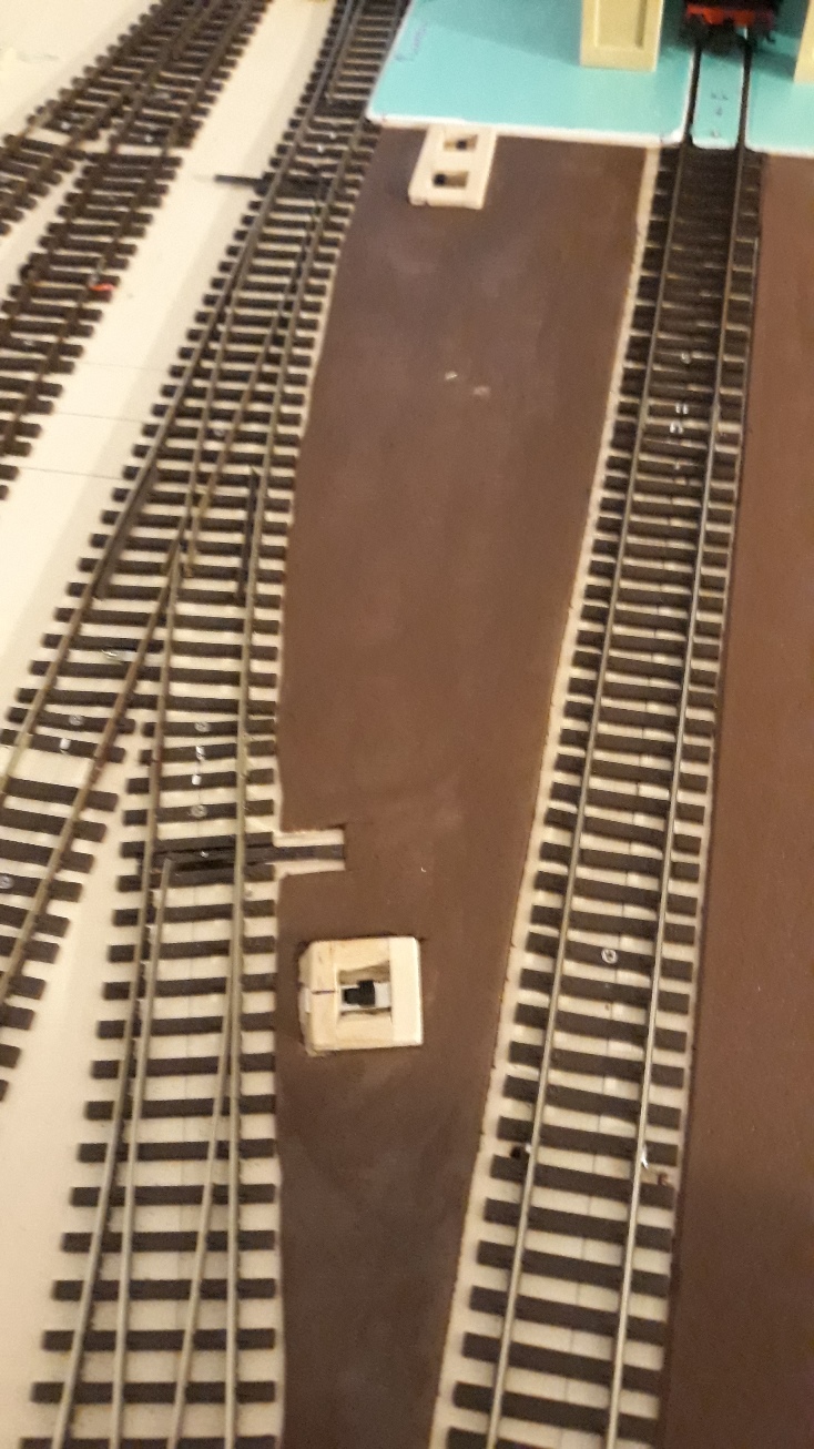 Terminata la posa della pavimentazione in forex della zona rimesse, prima di eseguire la verniciatura e l'invecchiamento simil cemento/asfalto, ho iniziato a realizzare i tombini che andranno a nascondere i deviatori a slitta per il comando elettrico dei deviatoi.