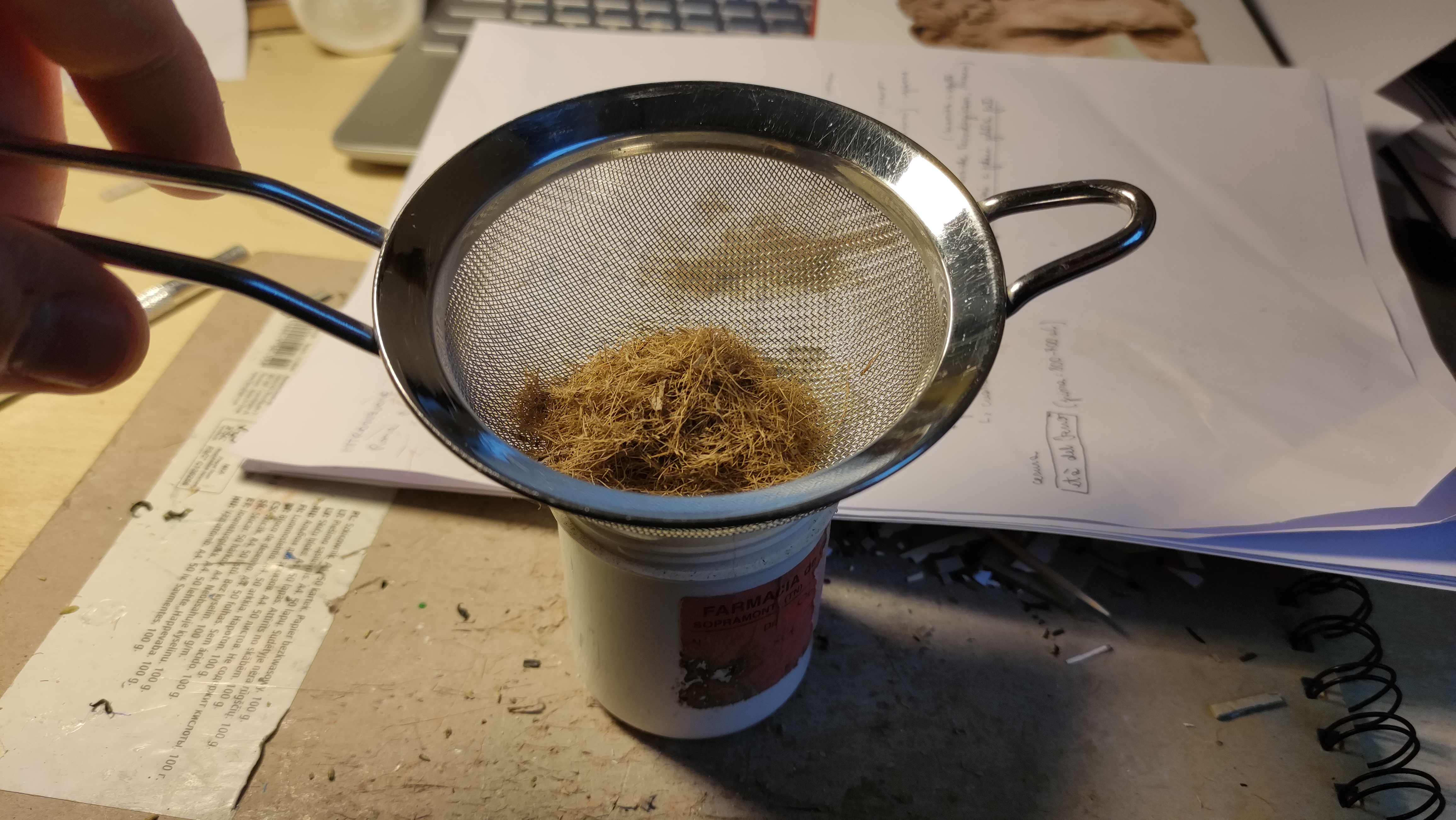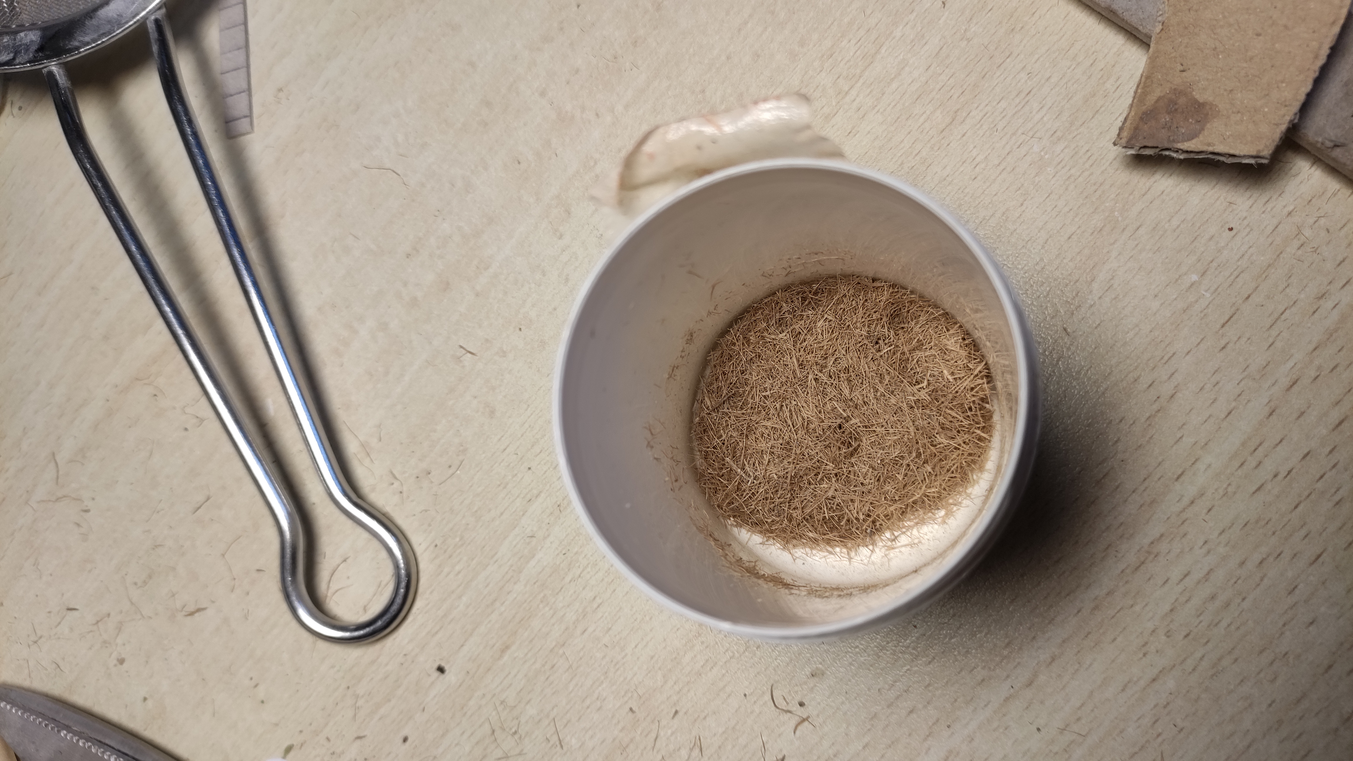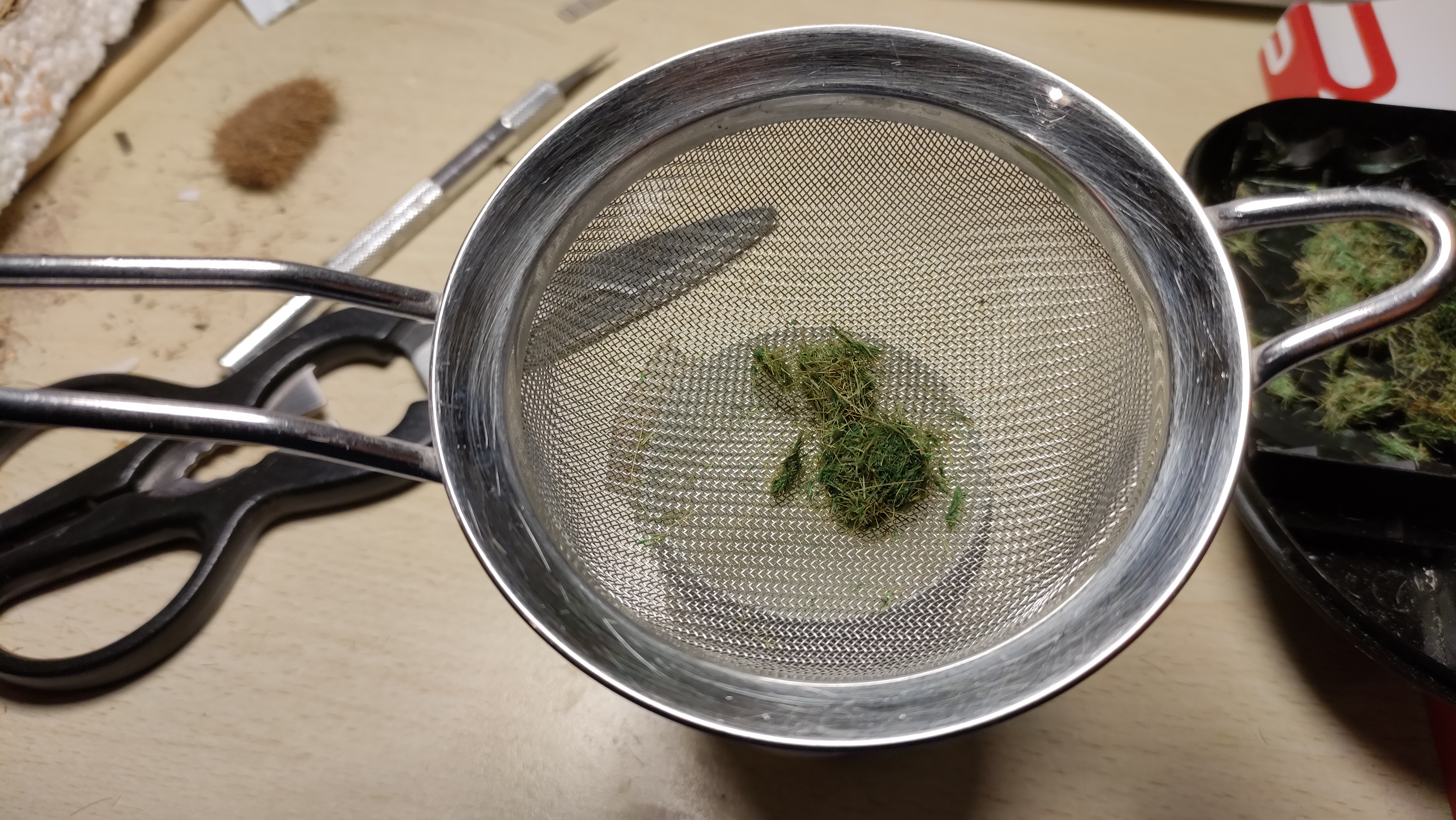 Alla fine, non resta che ripassare tutto al colino per staccare i grumi che si sono formati: si ottiene un composto che è del tutto simile a quelli in commercio, ma a costo zero. Il colore si può poi ritoccare ripetendo i passaggi o direttamente sul diorama dopo l'applicazione.