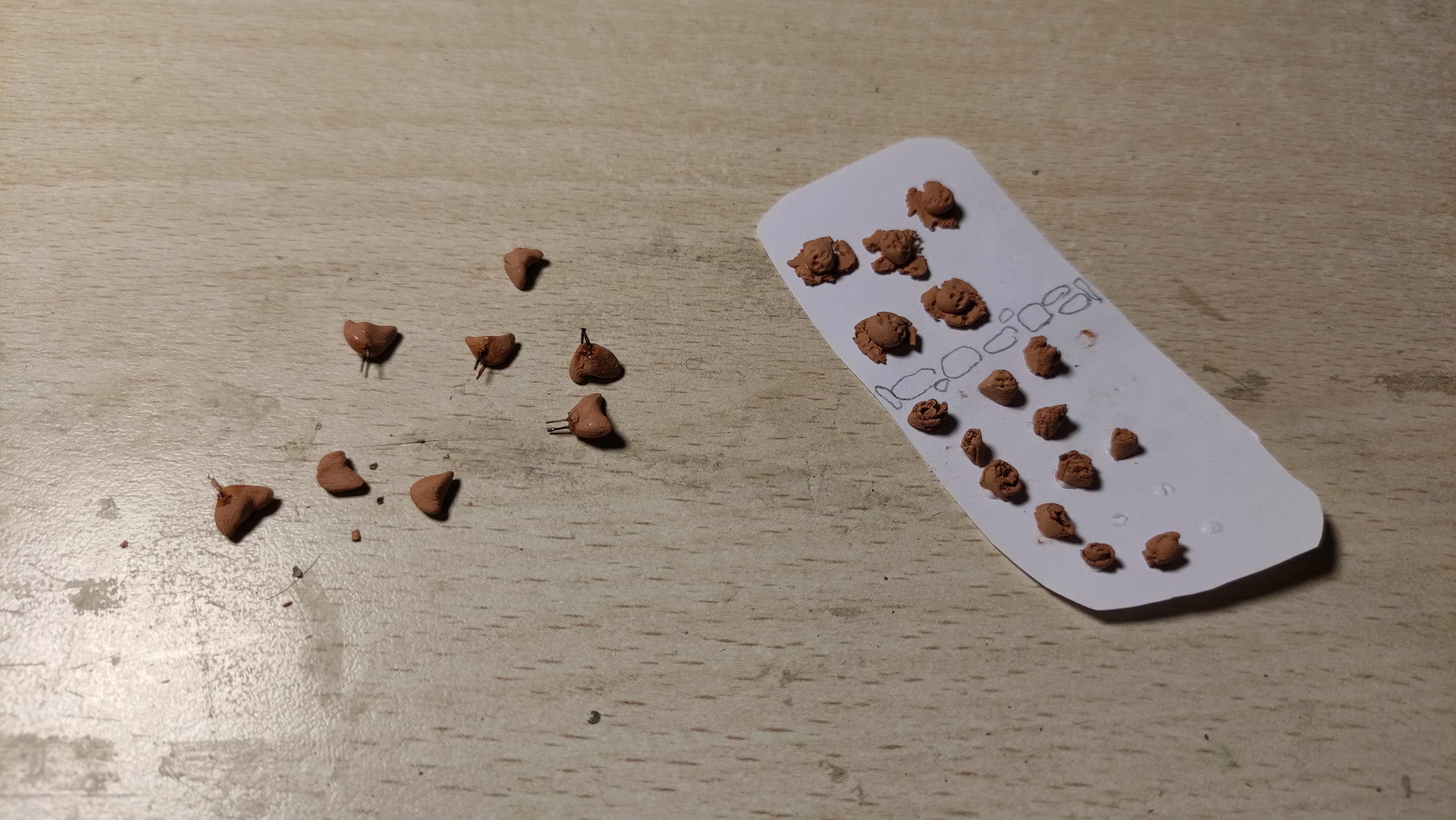 Stasera lavoretti di fino, per variare un po': mi sono dedicato all'orto, producendo in DAS un po' di verdure varie (cavoli e insalate) e preparando la sagoma in carta per fare qualche prova. Poi ho iniziato a preparare gli abitanti del pollaio, alcune gallinelle.
