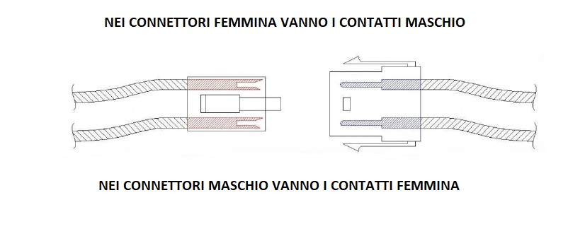I terminali maschio vanno nel connettore femmina e viceversa.