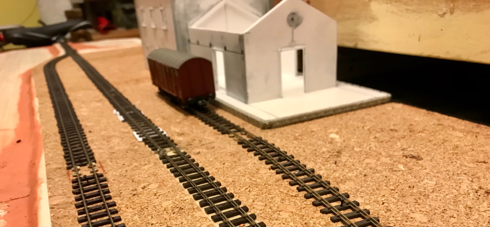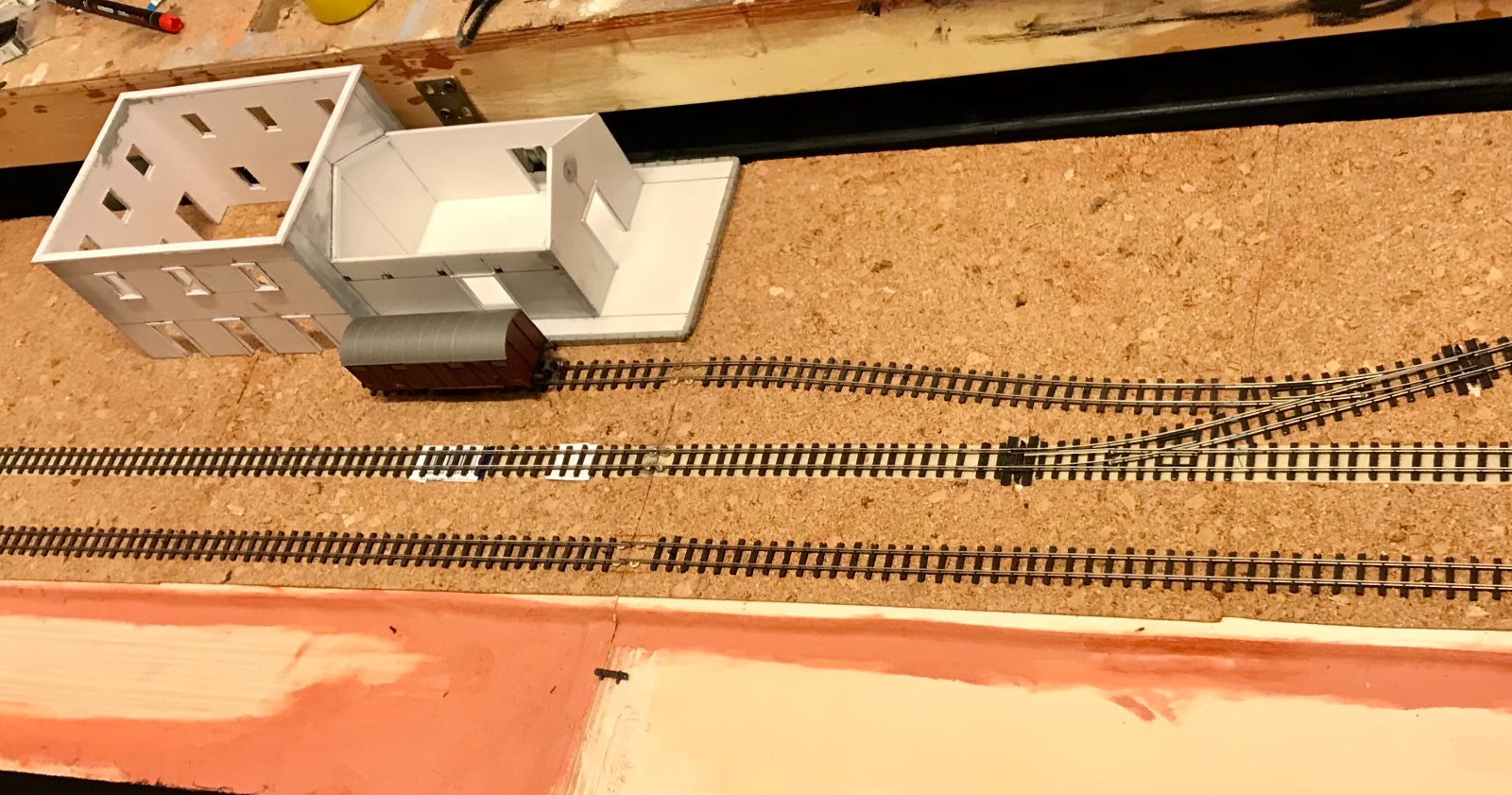 Particolarità: per gli scambi che portano al magazzino merci, ho voluto costruire un solo comando che azionasse due scambi in contemporanea.
