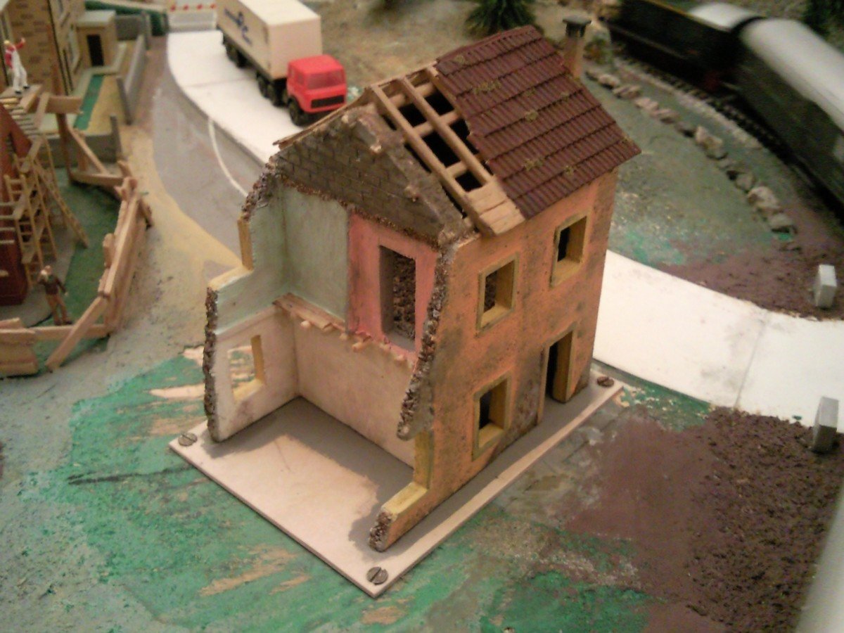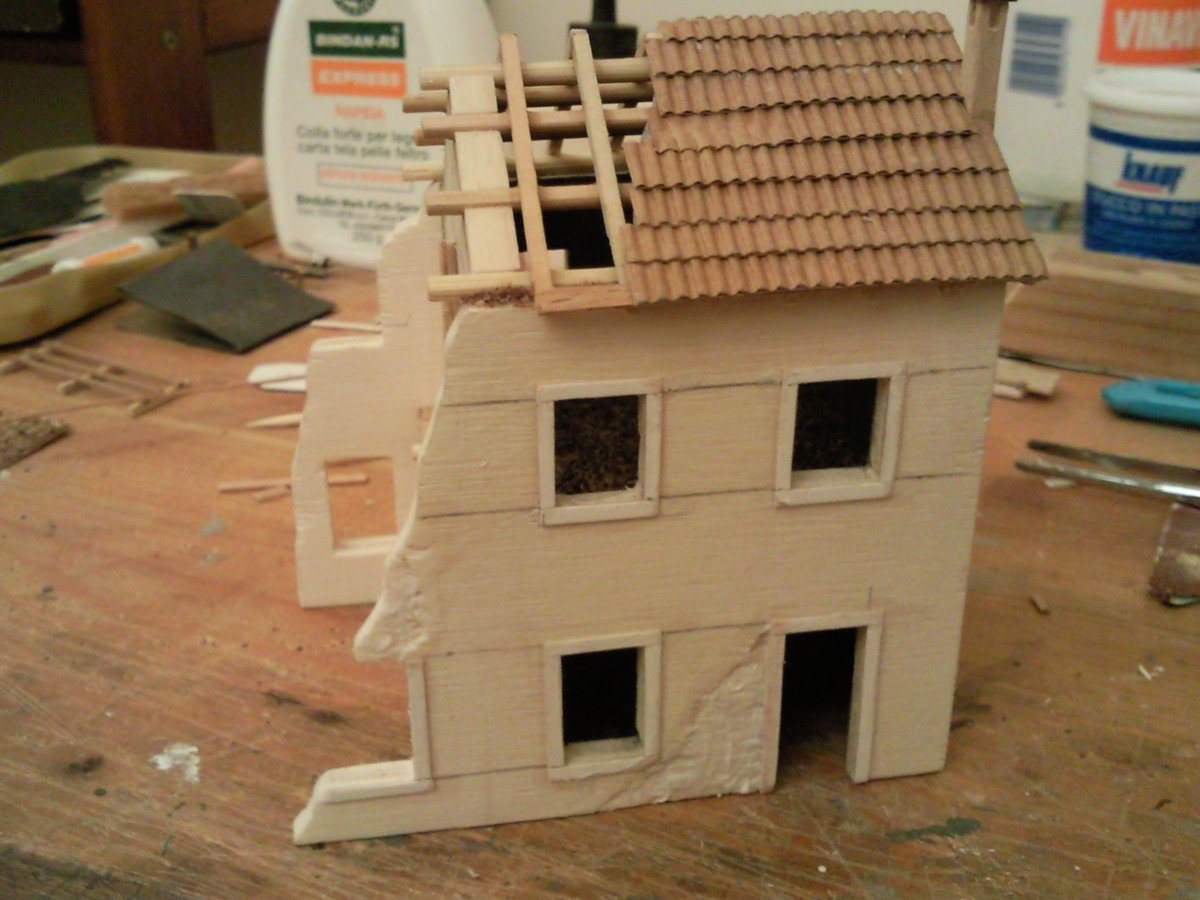 Mi interesserebbe molto capire come hai realizzato i muri della casa parzialmente abbattuta perché l'effetto è identico alla realtà.