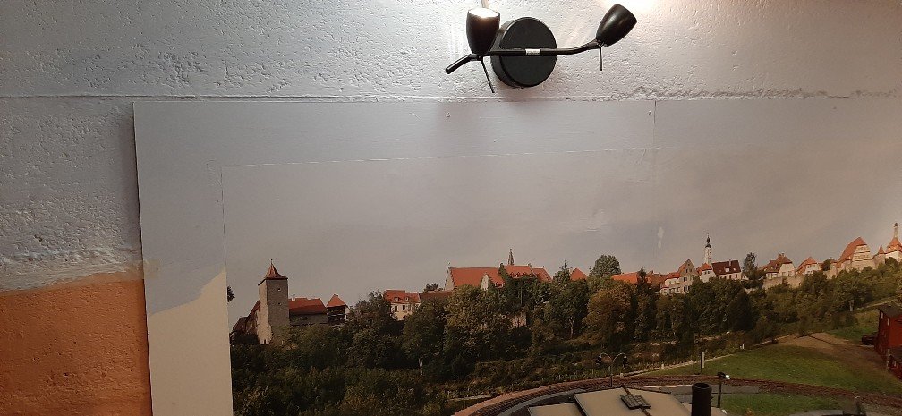 Il tempo per il plastico è sempre risicato al minimo ma sono riuscito a completare la verniciatura del muro sovrastante il fondale, con tonalità volutamente sfumate e non omogenee...che ve ne pare?