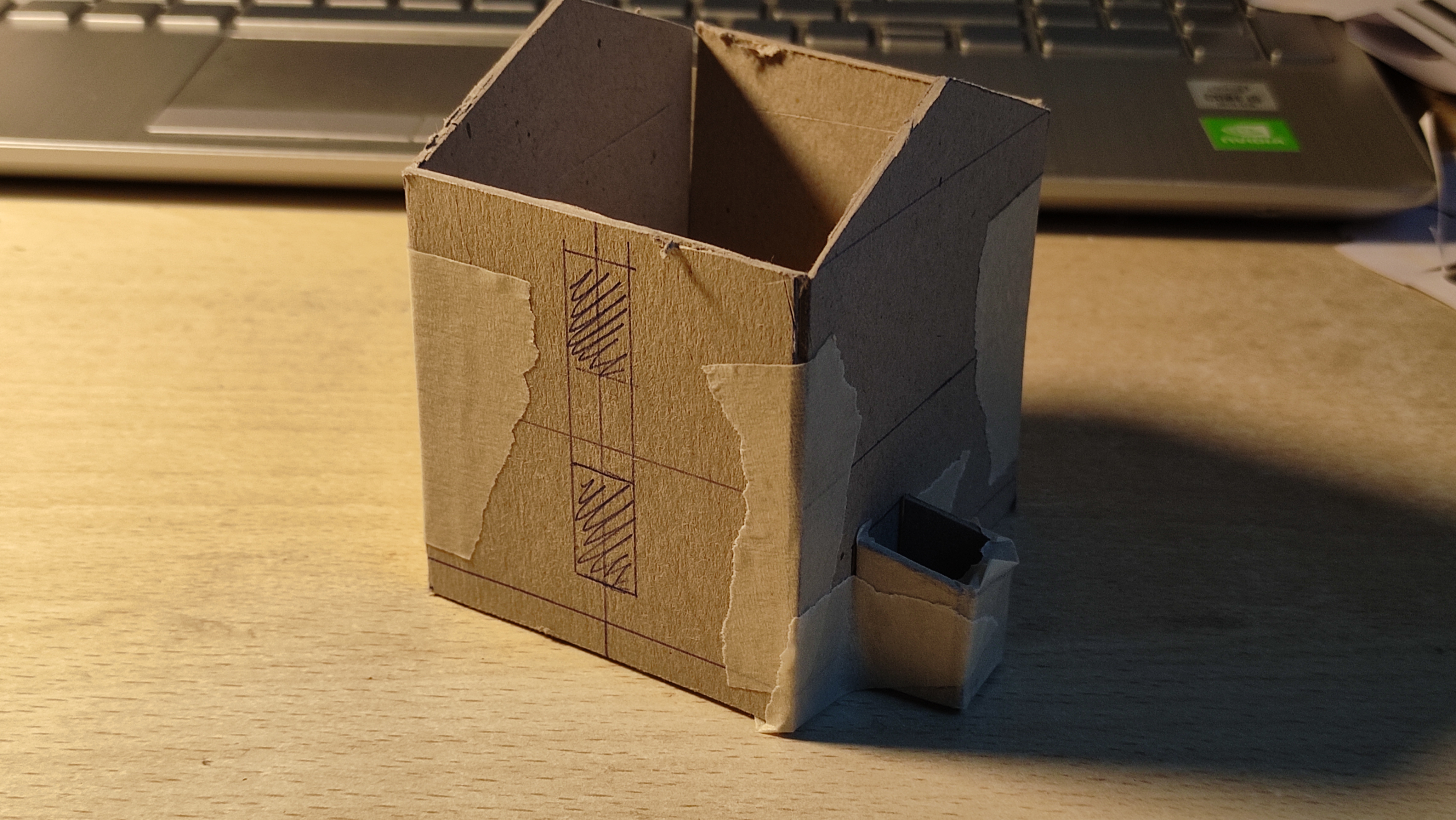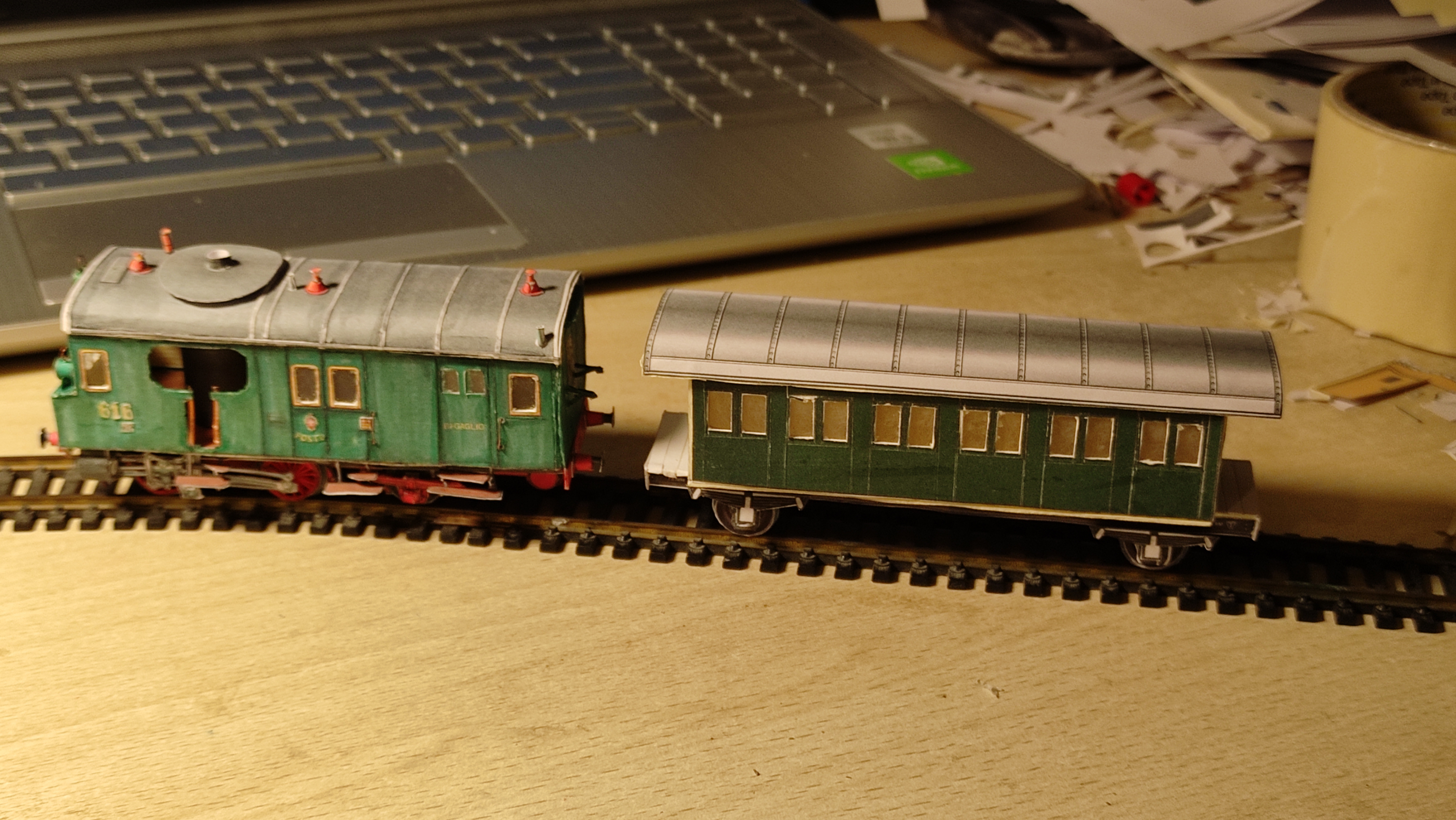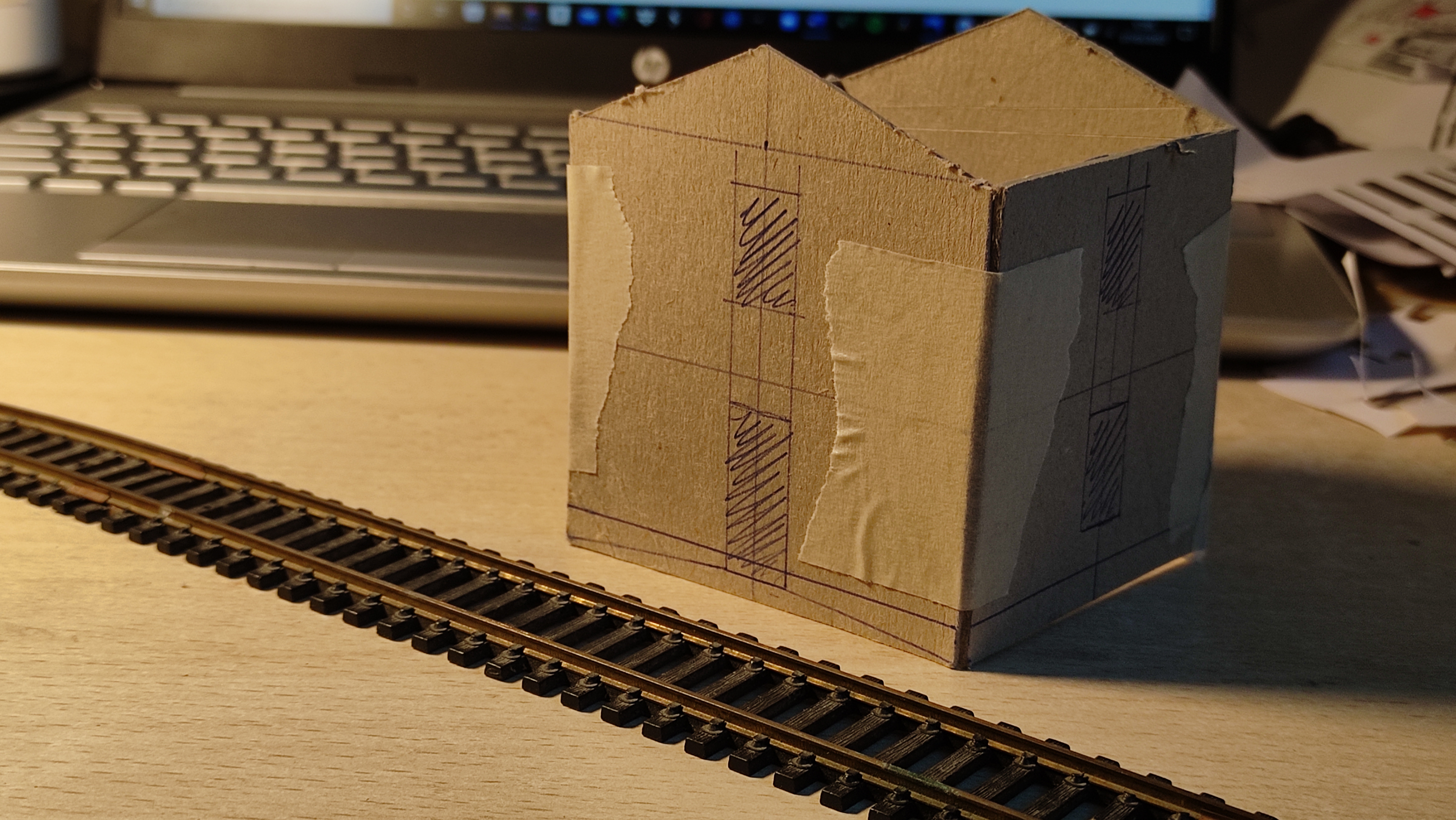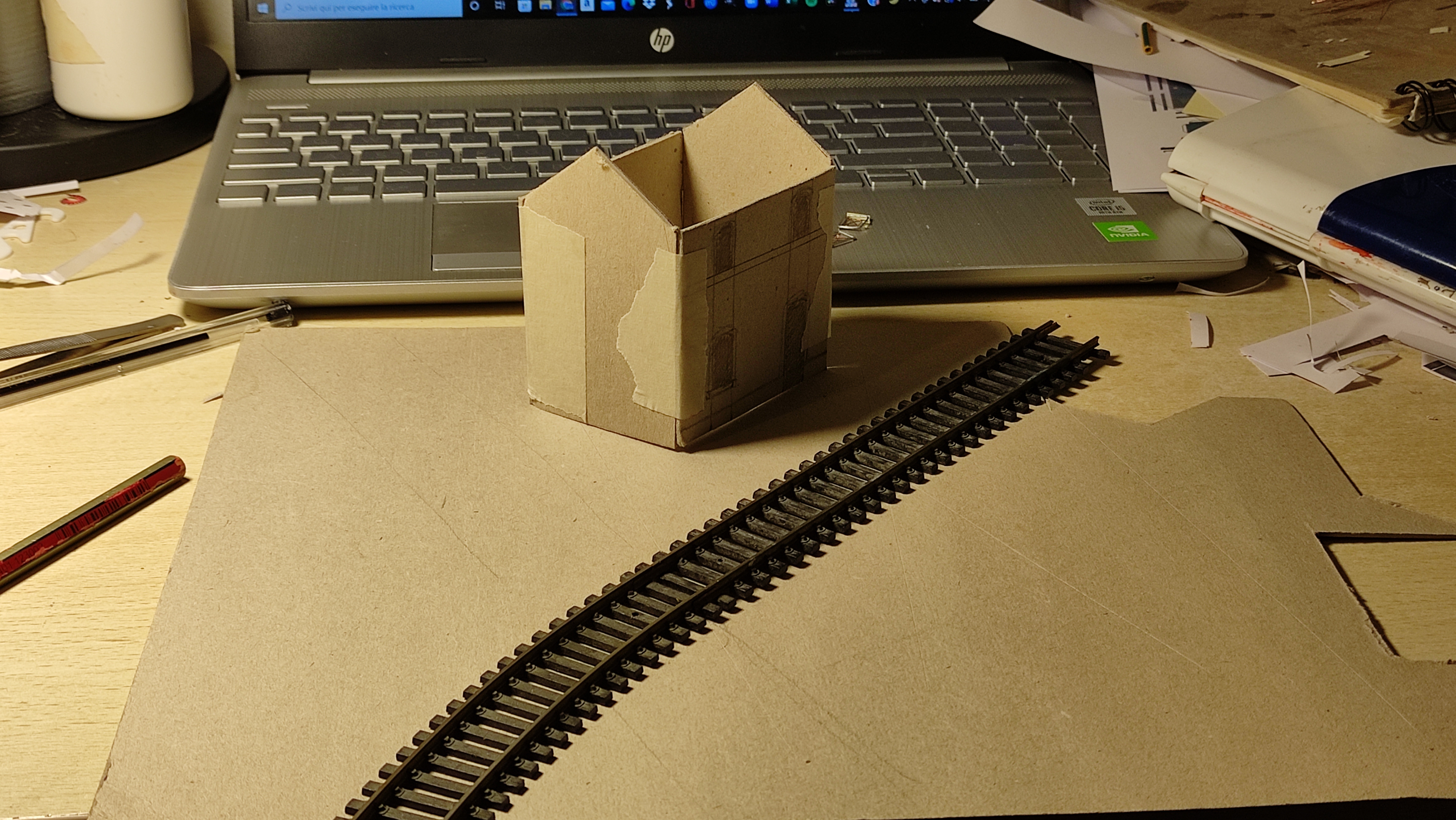 Ma soprattutto, habemus casellum! O meglio, un primo ritaglio delle pareti e un montaggio provvisorio, ma è già un inizio. Ho deciso infatti, per ora, di procedere con il diorama in contemporanea con il convoglio. Qualche foto giusto per provare l'insieme...