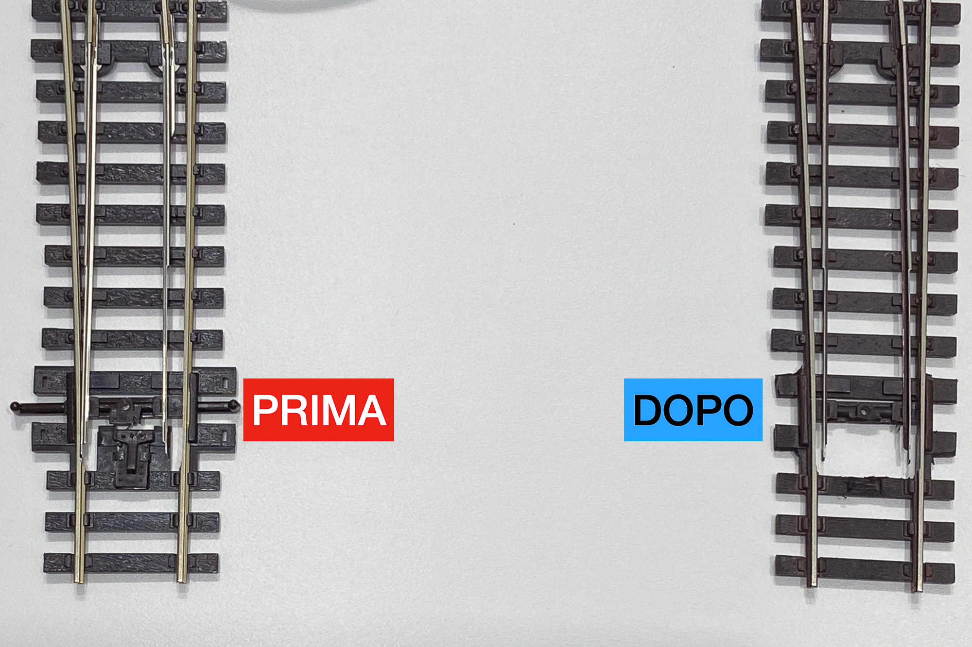 Nella foto n° 3 mostro il deviatoio prima e dopo le modifiche descritte.