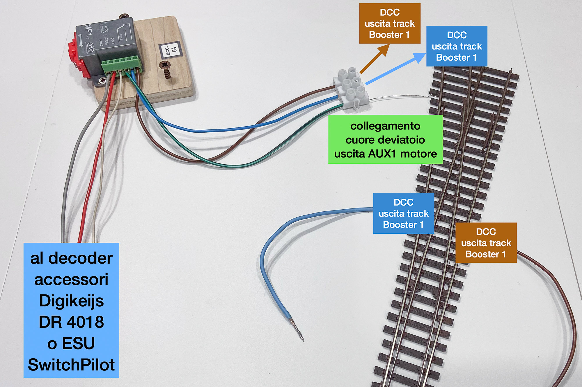 Comunque se si vuole semplificare il cablaggio occorre alimentare i motori/segnali con il BUS DCC proveniente dalla centrale (uscita track).