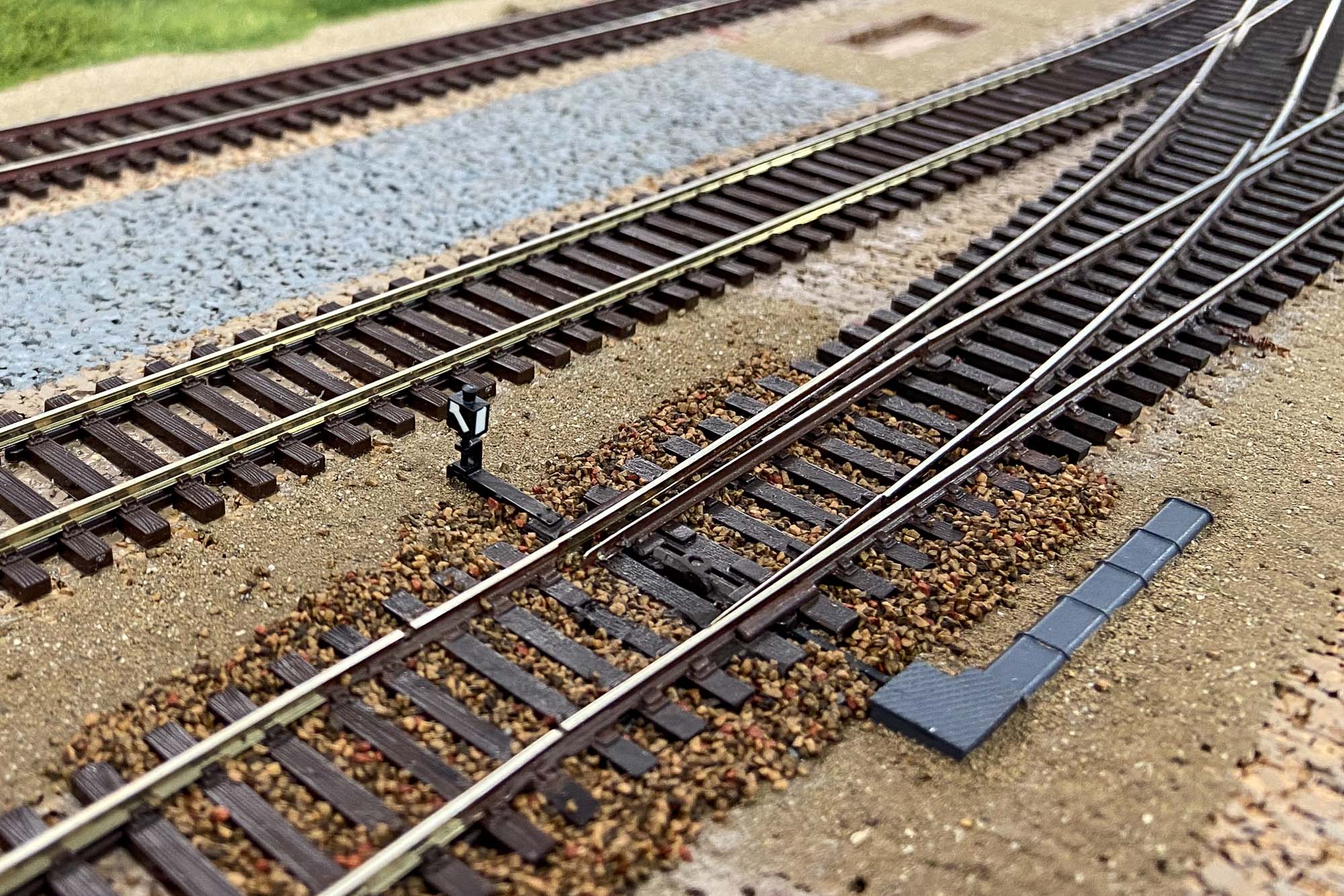 Prima di posare massicciata ho dovuto anche piazzare le canaline, i motori e le lanterne tipiche dei deviatoi DB.