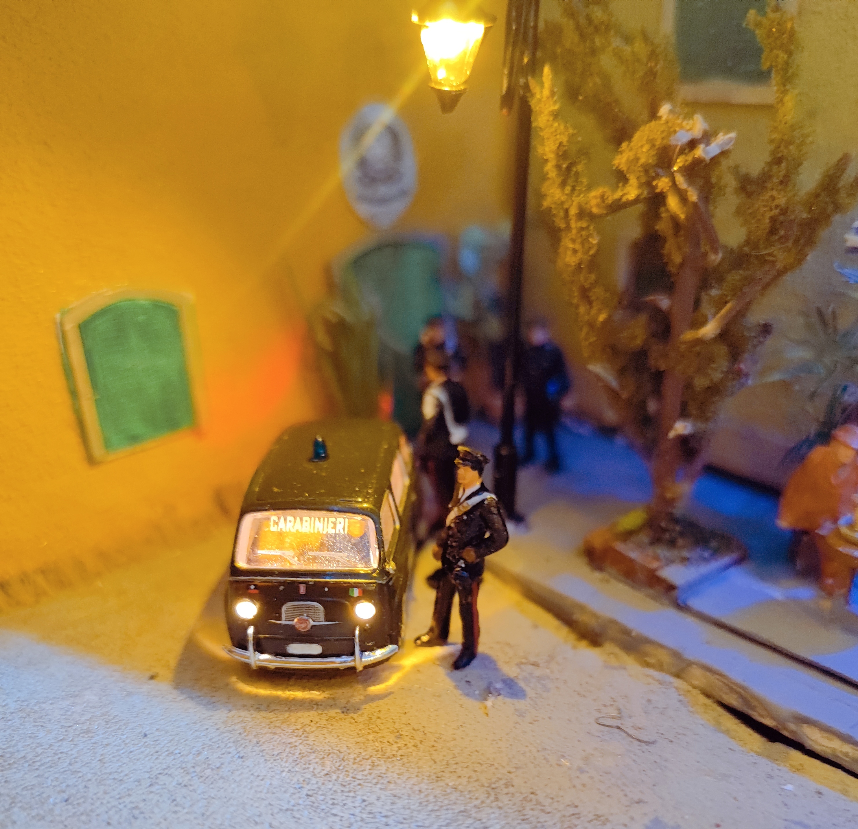 Molto carino, se posso permettermi, attenuerei un pochino la luminosità dei lampioni e soprattutto dei fari della Topolino (al vero era poco più di quella delle candele)