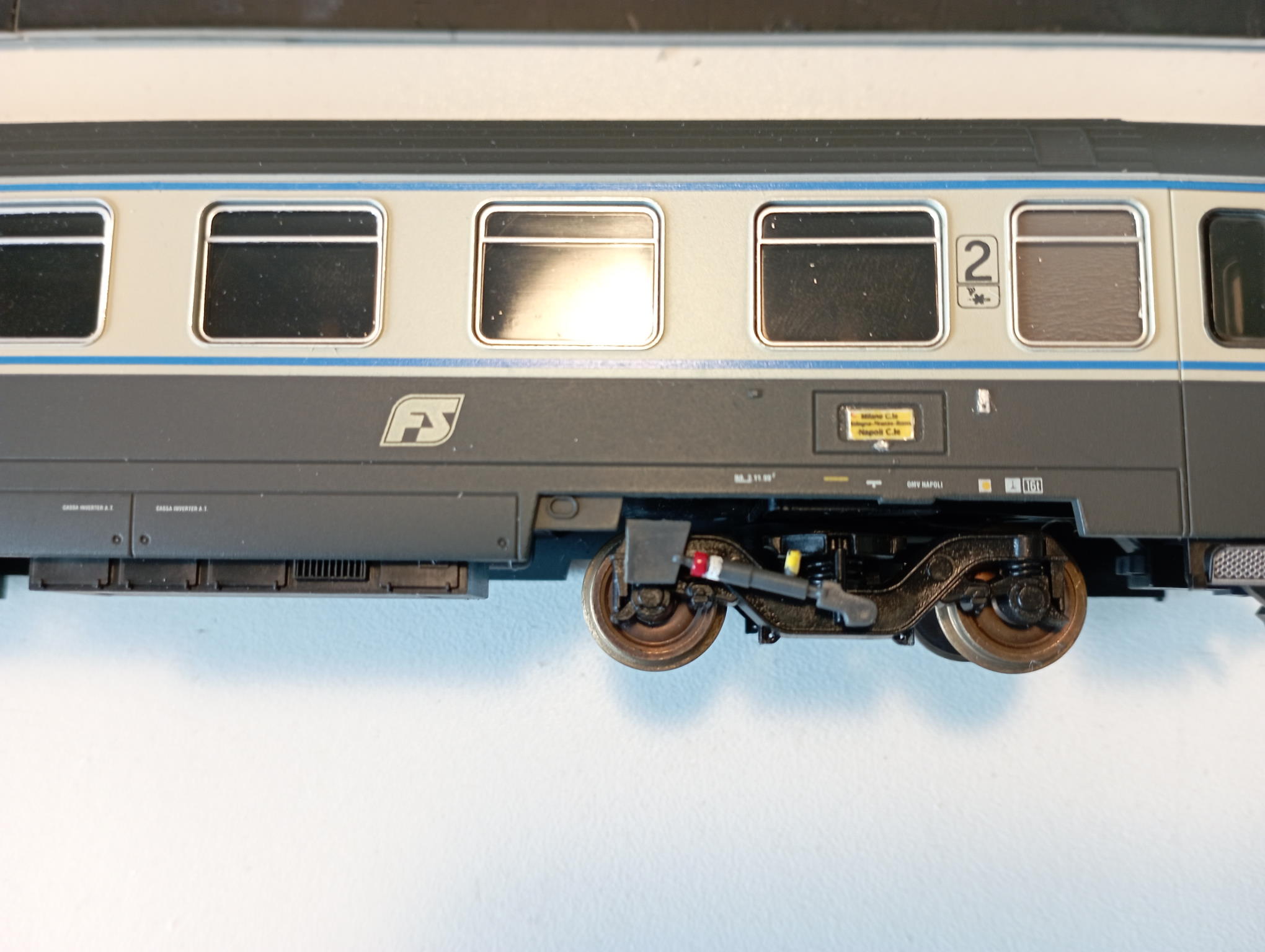Sicuramente gli smorzatori antiserpeggio sono difficili da reperire, proverò a chiedere a qualcuno che stampa in 3D magari. Poi se riuscissi a reperire il foglio delle istruzioni magari c'è scritto come vanno montati, perché la cosa curiosa è che la carrozza non sembra avere fori di predisposizione; eppure controllando su alcune foto in rete si vede chiaramente che sono presenti gli antiserpeggio tra gli aggiuntivi.