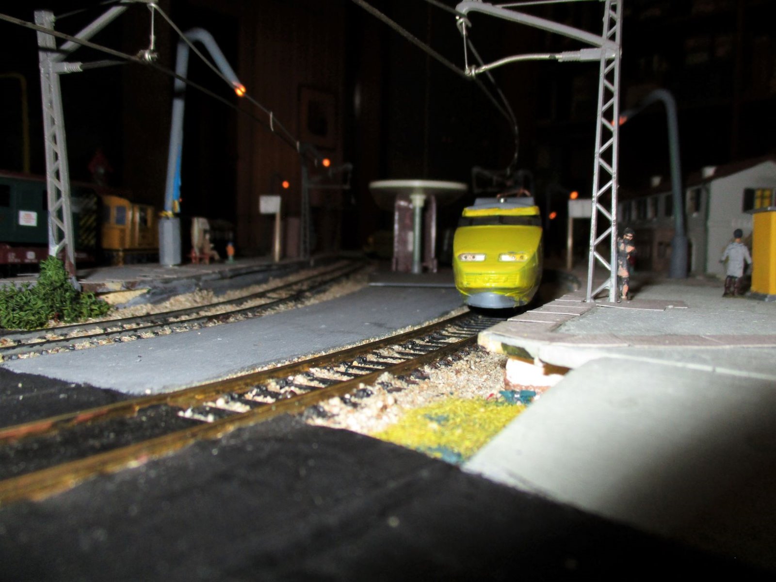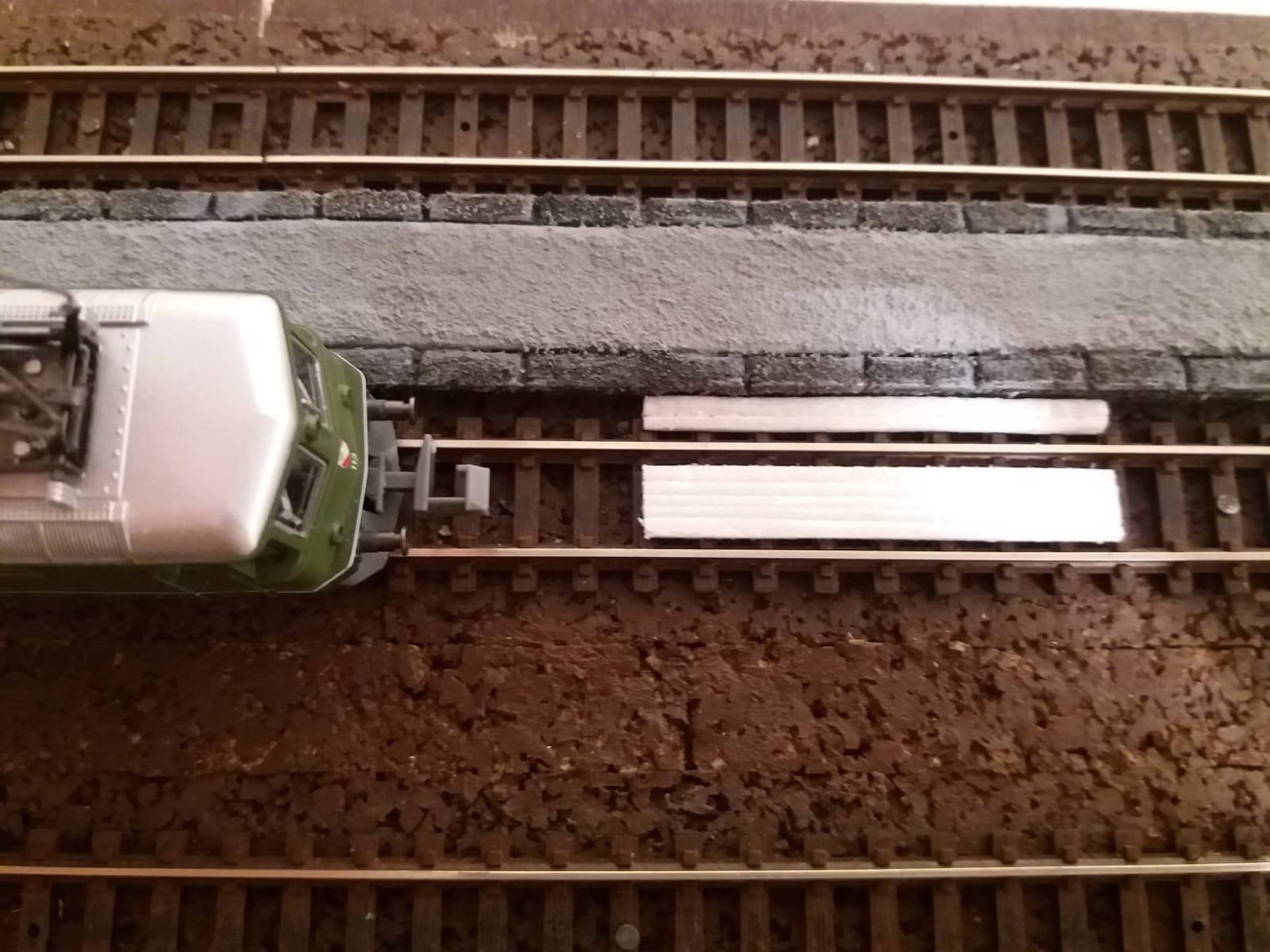 La distanza tra passerella interna ed esterna è circa 4mm quindi in scala varrebbe a dire 64 mm quindi circa un passo di una persona normale per cui potrebbe starci come misura. I listelli sono piazzati al limite del bordo bulloni quindi non interferisce con passaggio loco,. Che dite faccio pure l invito al marciapiede o lascio così? Al momento il dislivello è circa 1mm