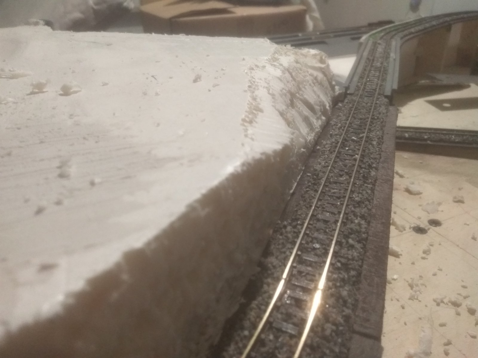 Beh in realtà vorrei usare quello che vedi in foto come base per alzare poi ulteriormente le rocce e farci il laghetto.. Però i contorni a ridosso dei binari sarebbero quelli come li addolcisco?