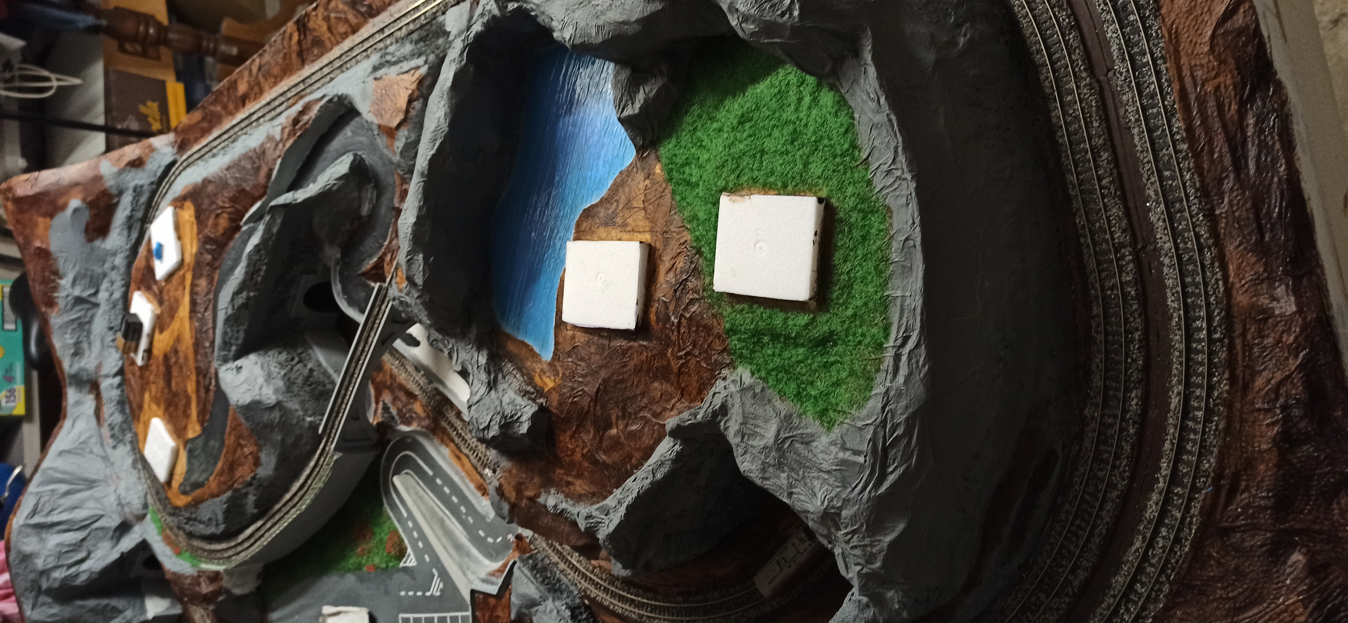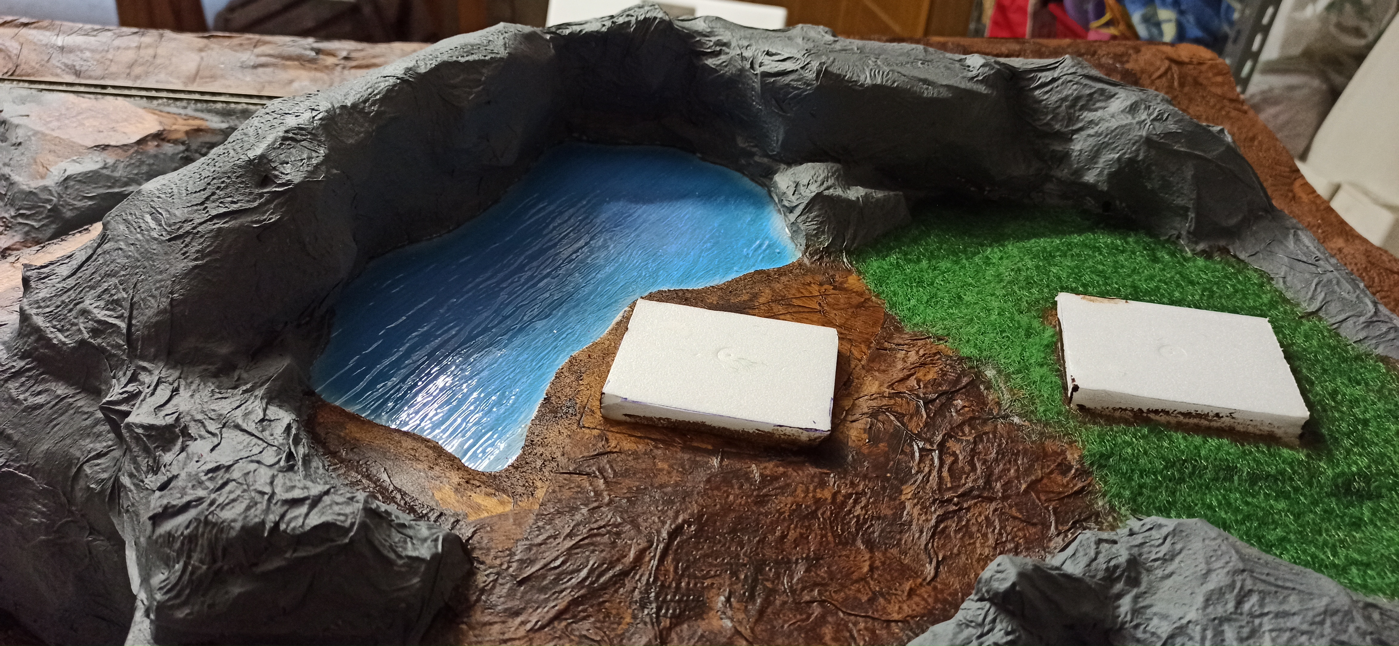 Posto qualche foto. Ho dato una prima mano quasi a tutto. Ora dovrei passare alle sfumature. Come prima cosa sfumerei le rocce con un crema molto diluito.