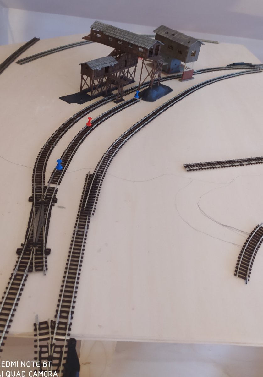 Portala vicino al magazzino merci, ruota di 180° la rimessa, che tra l'altro potrebbe avere una stallo passante dietro e scavalla con un binario flessibile la rimessa circolare passando dove hai messo la torre piezometrica, il resto come posizione va bene... al netto di rivedere tutti i deviatoi afferenti alla zona officina ecc.