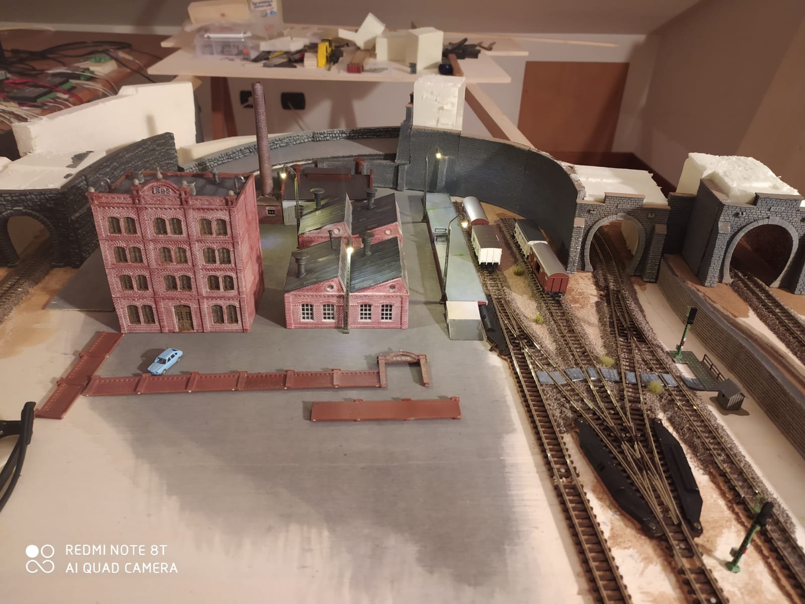 in questo periodo mi sono divertito a pensare al layout della piccola cittadina di SchienenStad in relazione alla sua piccola stazione ed alla fabbrica di rotaie.