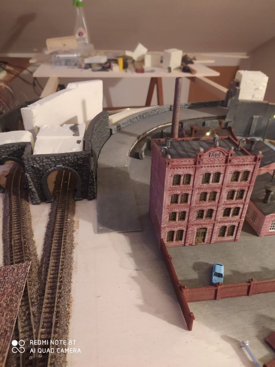 questa sarebbe l'idea, da studiare ancora i percorsi stradali, che prevedono una strada in arrivo su lato destro dove dovrò realizzare una scenografia collinare a raccordo tra i 4 portali di galleria.