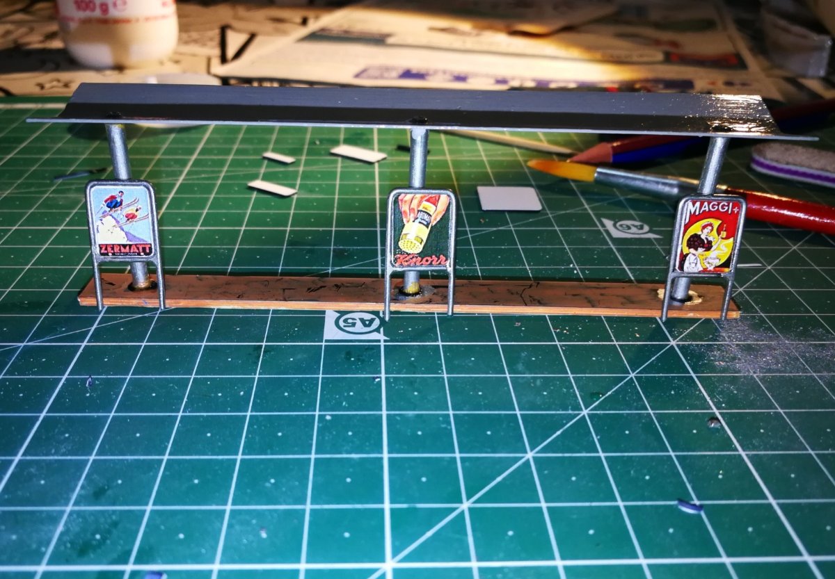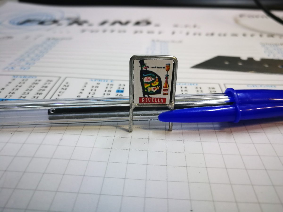 Ottima l'idea di usare il fil di ferro...credo sia perfettamente in scala per imitare i tubolari che si usano per la struttura del pannello pubblicitario...