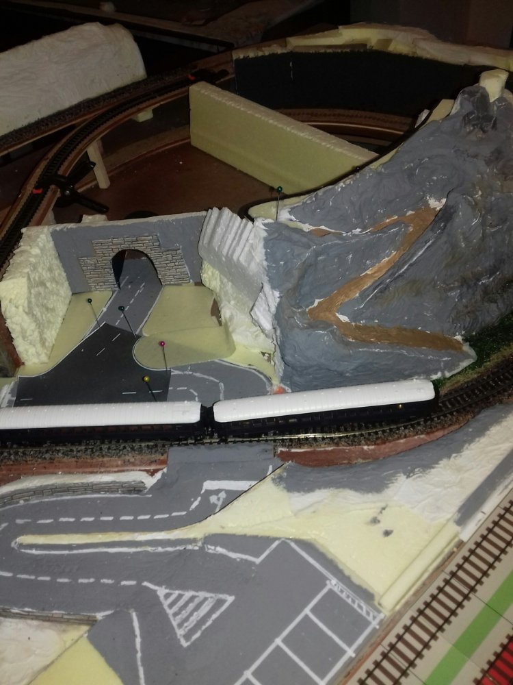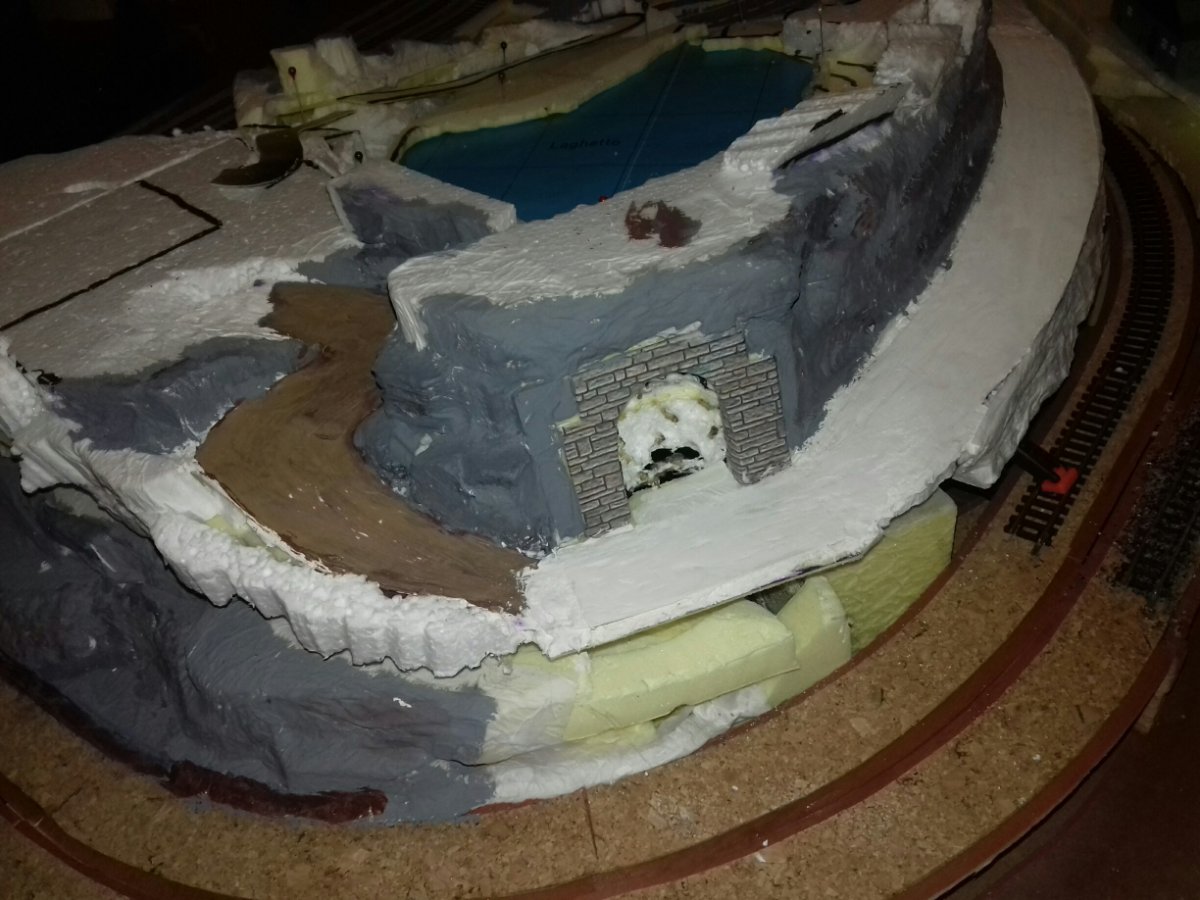 La mia idea di come rivestire il muro dietro la stazione la stradina che porta al laghetto... Visto che la zona in prossimità del passaggio a livello non mi piaceva come proposto dalla DeA...e visto le varie incongruenze ho deciso di inventarmi ....una galleria che porta al laghetto e allo chalet... La collinetta della chiesetta.... E,infine la zona fattoria e una vista di tutto l'insieme.. E questo è quanto fatto fin ora....