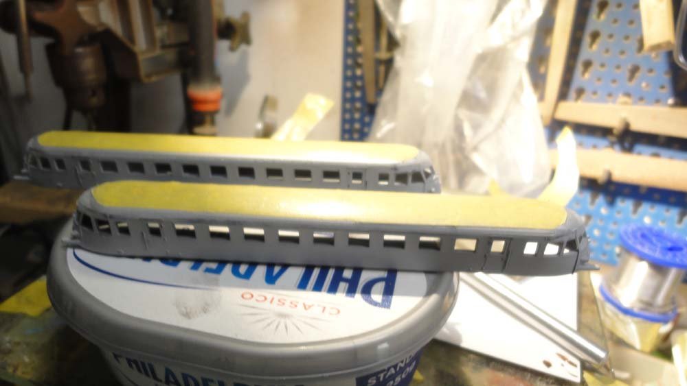 Stai facendo un bel lavoro Beppe però avrei lavorato di più con la carta vetrata per togliere meglio le imperfezioni della carrozzeria, alcune giunture mi sembrano un pò troppo evidenti per la scala N