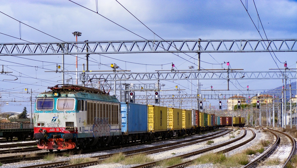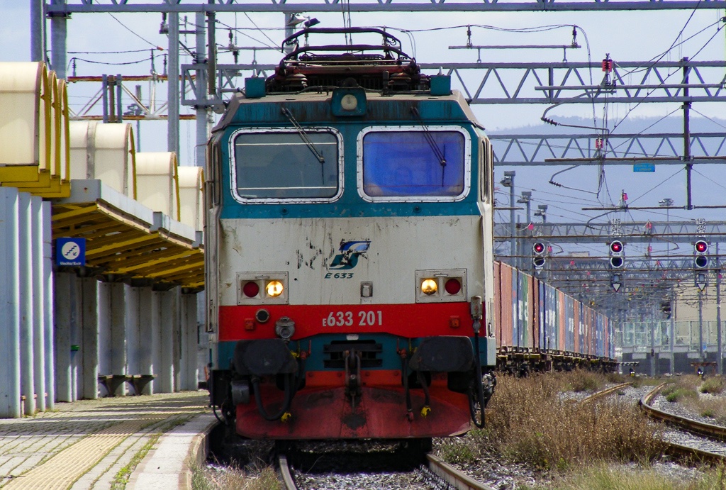 Merci non identificato, partito quasi certamente da Fiorentina di Piombino, con in testa la E633.203 e una D145 di rimando...decisamente particolare come transito!