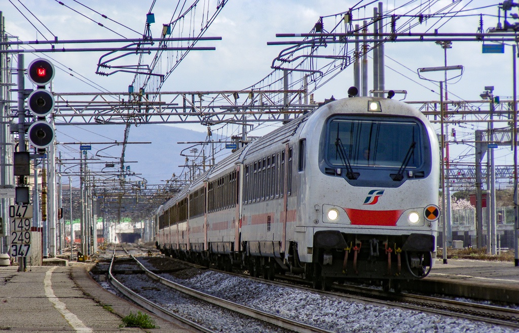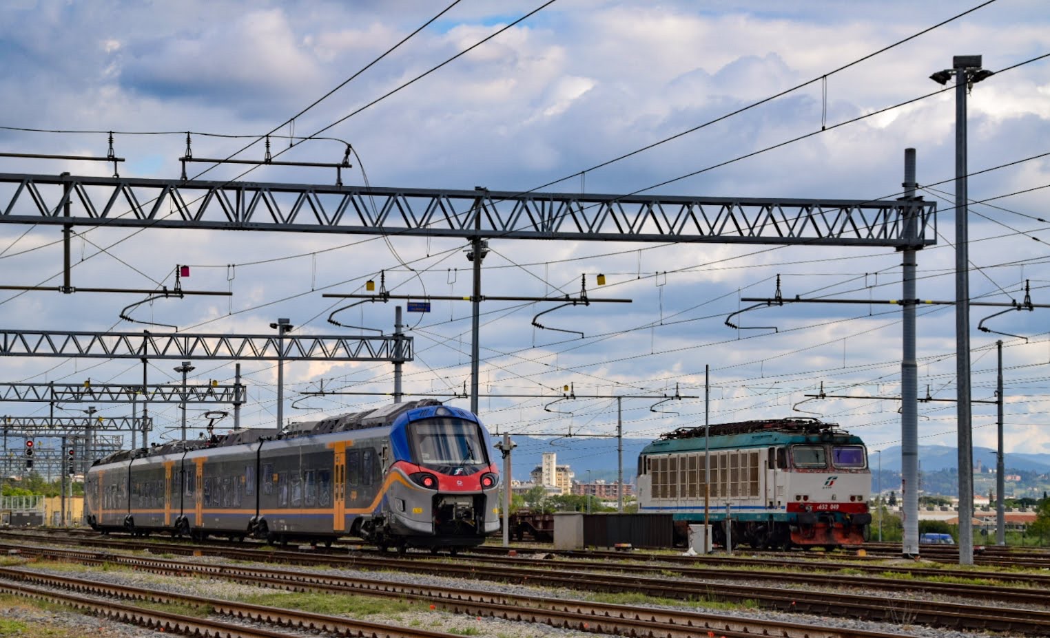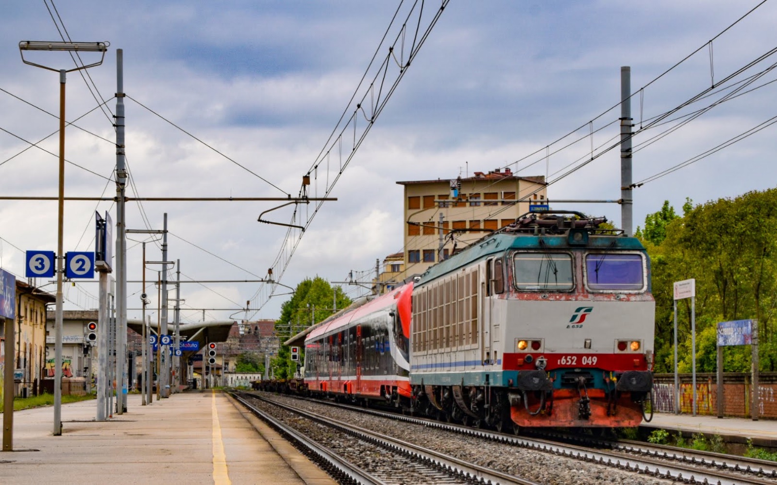 Il miracolo sarebbe anche il 652 pulito (che, di questi tempi, posso assicurarvi che è cosa alquanto rara e non solo per le unità in livrea XMPR); però ciò che più desta gli animi è cosa si sta portando dietro: trattasi dell'ETR322.001, prodotto da Newag per Ferrovie del Sud Est, il quale ha completato i test di rito presso l'Italcertifer di Firenze e ora è in consegna a FSE. Altro miracolo è stato il tempo (fortuitamente soleggiato) ma che, come vedrete di seguito, non ha risparmiato il transito successivo: