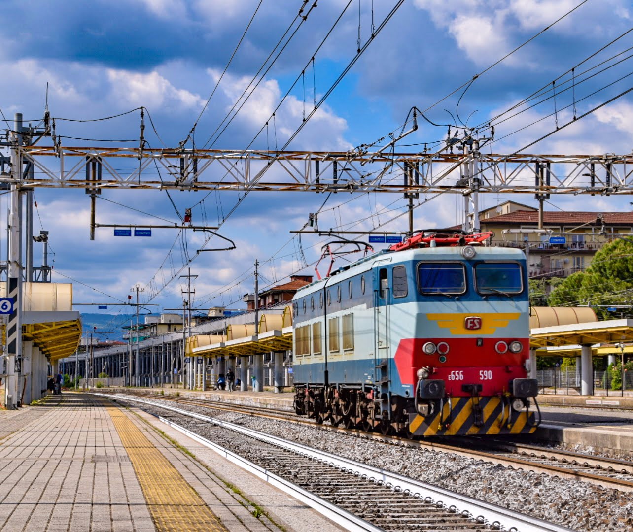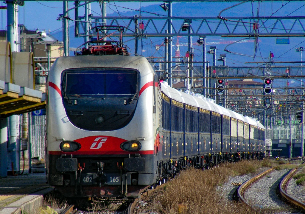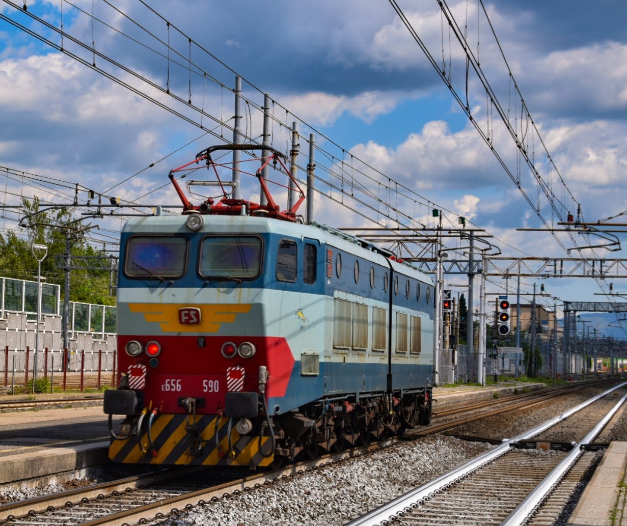 Toh guarda chi si vede! Questo particolare caimano, costruito da Sofer/Ansaldo nel 1989 appartiene alla VI° serie di questo gruppo di locomotori. La suddetta macchina appartiene al parco storico, infatti viaggiava per conto di Fondazione FS, dato che in mattinata ha portato cinque vetture storiche a Pistoia.