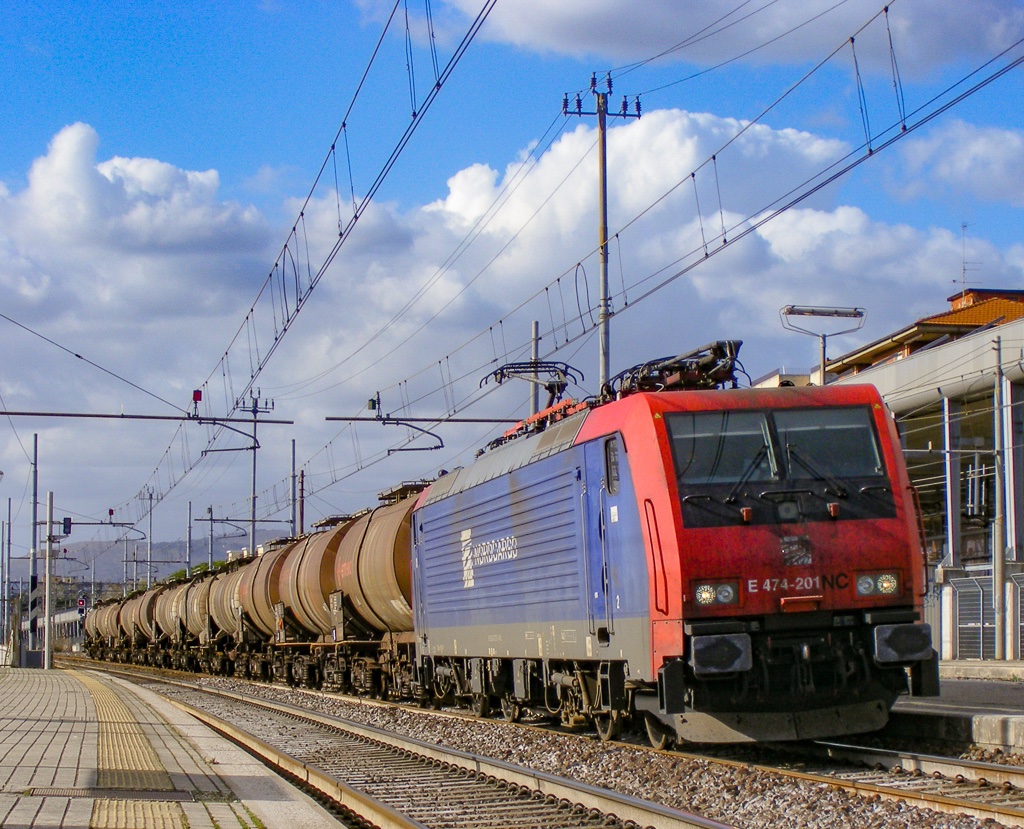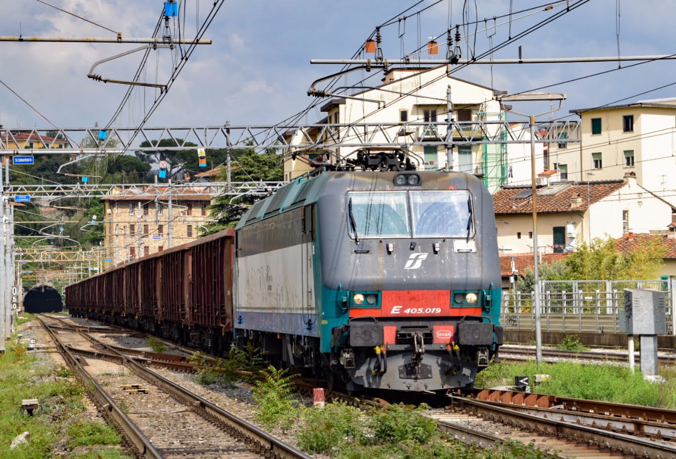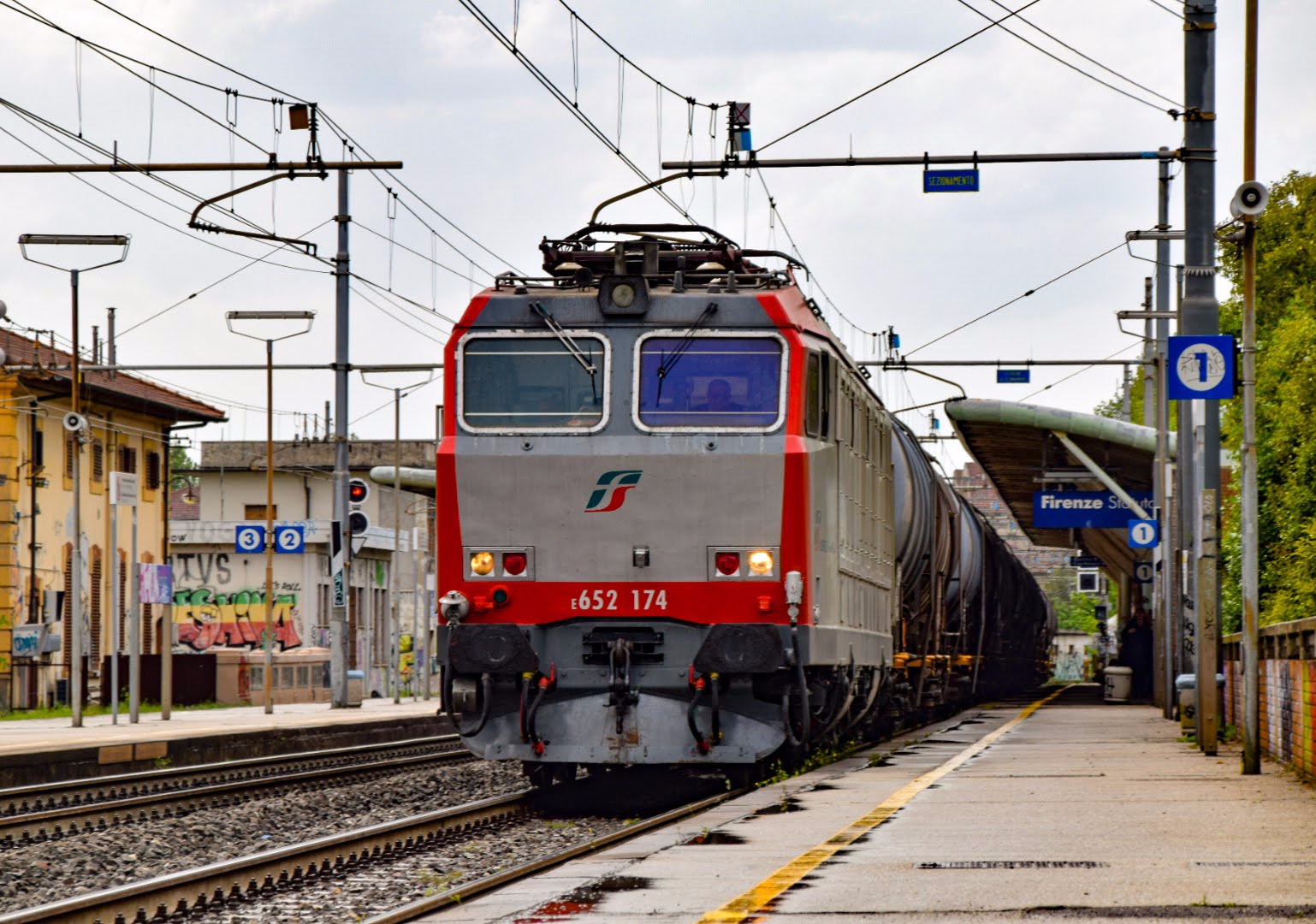 Sbuca dalla curva il San Giovanni, uno dei pochissimi merci di cisterne che attraversa il nodo Fiorentino, il convoglio trasporta cisterne piene di esaetanolo provenienti da Gladbeck West (città della Germania nord-occidentale) fino alla centrane Enel della cittadina toscana.
