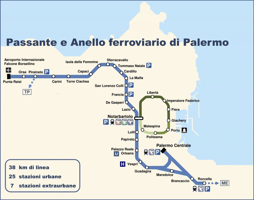 Il primo treno a percorrere la tratta Palermo Centrale - Punta Raisi (aeroporto) è stato il Regionale 26461 partito da Palermo Centrale alle 6:05. E' così ripristinato il collegamento ferroviario tra la principale stazione di Palermo e l'aeroporto internazionale Falcone-Borsellino di Palermo. I treni fermano in tutte le stazioni del passante, Isola delle Femmine, Carini e Piraineto, collegando la stazione centrale con l'aeroporto in circa un ora. La frequenza dei treni, nei giorni feriali, è di uno ogni circa 30 minuti tra le 5:00 e le 21:42. Nei festivi la frequenza è di un treno ogni ora circa tra le 6:00 e le 21:52.