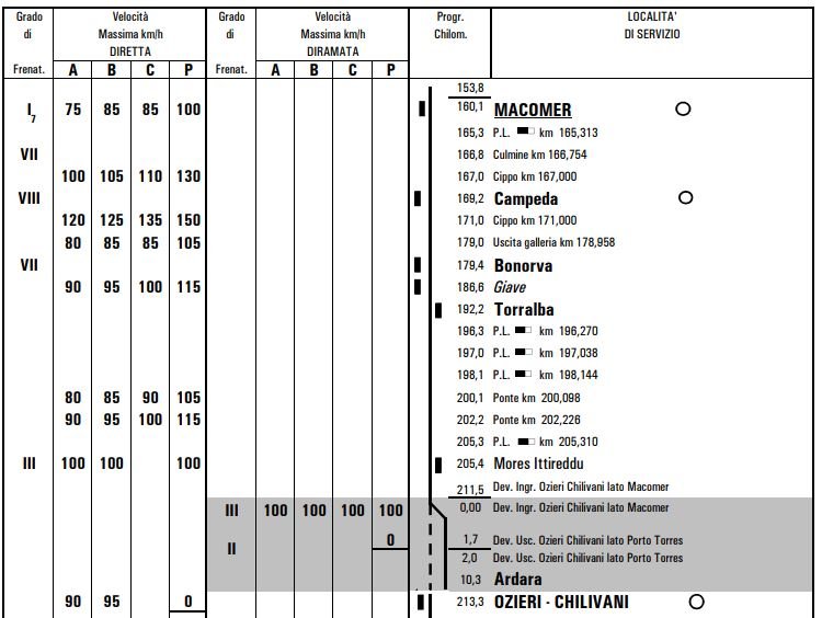 L'introduzione del rango P comporta la possibilità di utilizzare treni ad assetto variabile ed aumentare la velocità massima di circa 20 km/h tra Ozieri e Oristano, per una estesa di circa 110 km.
