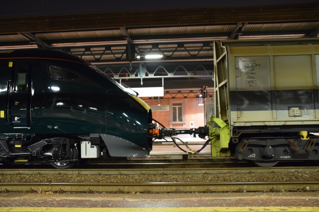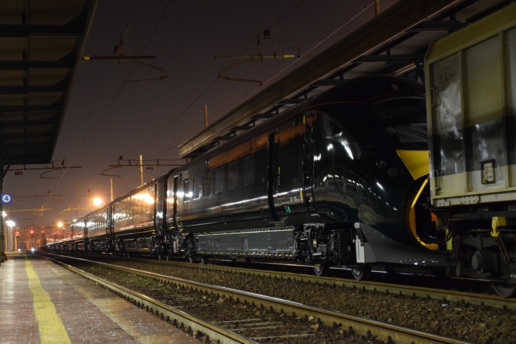 Ieri sera si è svolto il "quasi ordinario" trasferimento da Pistoia a Brennero dei nuovi convogli prodotti da Hitachy Rail Italy per la società Britannica GWR nello stabilimento di Pistoia, ecco uno scatto del convoglio in sosta a Prato Centrale.