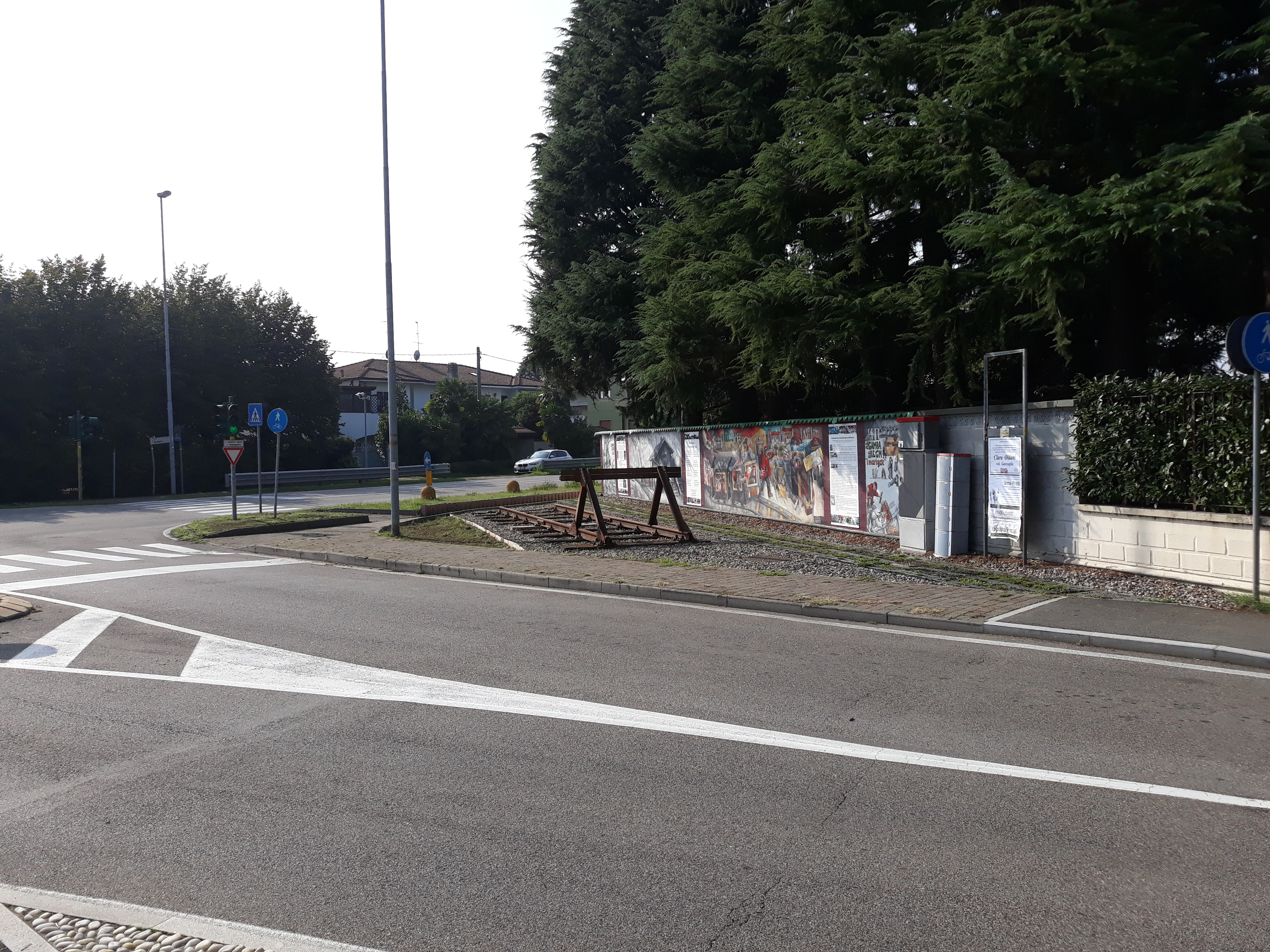 All'incrocio dove sorgeva la stazione del tram a vapore, nell'estate del 2021 è stato realizzata quest'opera, per celebrare il mitico mezzo di trasporto, oggi scomparso e che ha lasciato il posto ad uno "stradone" molto trafficato.