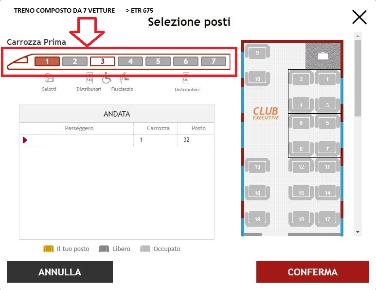 In fase di prenotazione dei posti (solo per gli ambienti Prima e Club Executive), i treni espletati con ETR 657 si riconoscono per la presenza di sole 7 vetture anzichè le 11 degli ETR 575.