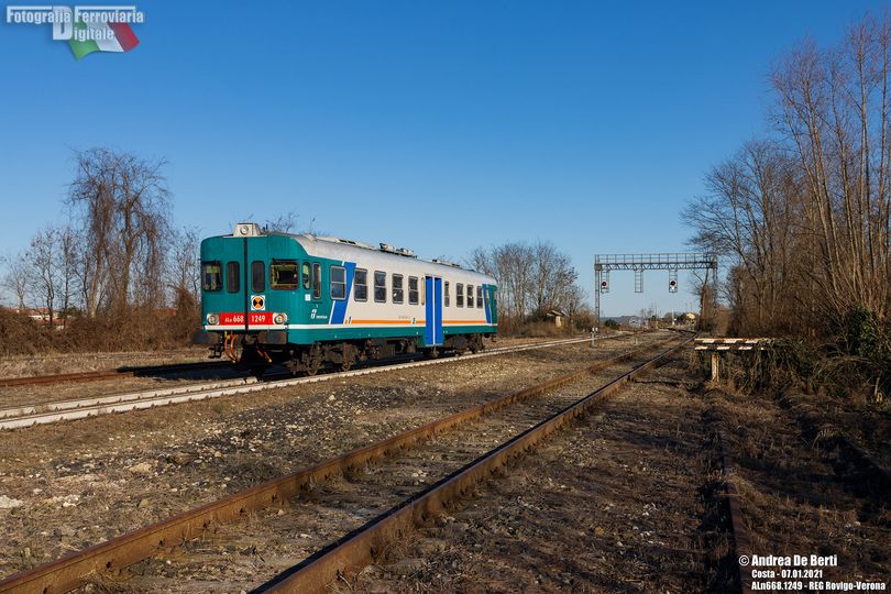 Foto: https://flic.kr/p/2mY17hz L'automotrice, una serie 1200 costruita da Omeca nel 1980, in seguito agli interventi di manutenzione, ha ricevuto il tetto bianco anziché grigio, differenziandola dalle altre. Gli interventi di manutenzione sono stati effettuati da Sistemi Territoriali, anche se la macchina è formalmente di Trenitalia. La ALn 668.1249 è in uso a Sistemi Territoriali per i servizi sulle linee non elettrificate Verona-Rovigo e Rovigo-Chioggia.