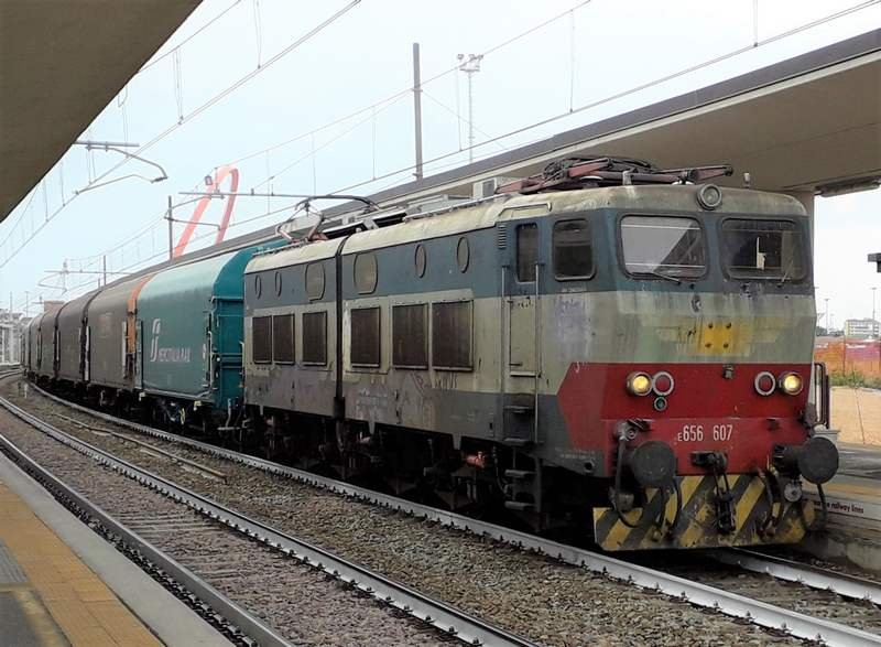 La E 656.607 è la penultima macchina consegnata ed è stata costruita dalle Officine Meccaniche Casertane nel 1989.