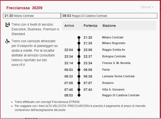 Avrei apprezzato la soluzione di un Frecciarossa attrezzato con cuccette su un servizio tra le due città.
