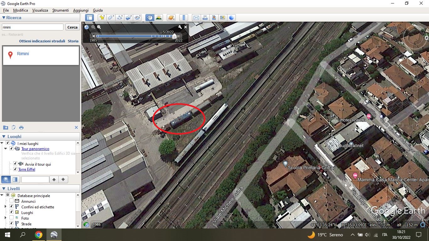Osservando delle immagini datate 5/2022, sembra che questa macchina sia presso l'impianto Trenitalia di Rimini. Probabile che ci sia ritornata senza essere stata avvistata.
