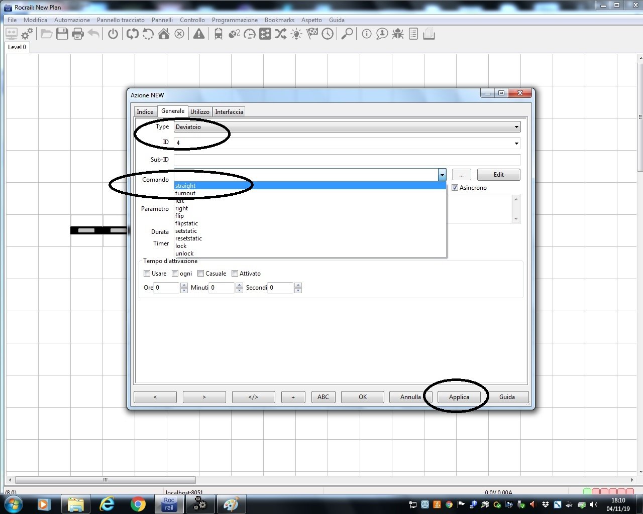 Nel definire l'itinerario devi anche specificare, nella pagina 'Comandi' dell'oggetto itinerari, come devono comportarsi gli scambi.