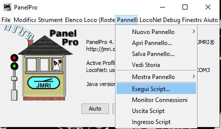 selezionare Esegui Sript... da Pannelli