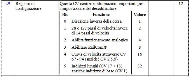 per quelle della velocità per me è arabo, poi non ci ho messo le mani perchè il controllo è disabilitato nella CV29, almeno credo è a 12 e dovrebbe essere dalla somma di abilitato il funzionamento analogico e il Railcom il resto è disabilitato, il cambiamento da 14 a 28 passi può essere utile, in un altra loco con un lenz è abilitato e va più veloce, non ha la CV49, però il controllo del carico se è la CV50 ha come valore 0. La cosa strana è che nelle istruzioni c'è la CV49 ma leggendo su Jmri non risulta, il decoder è lo standard+V2.