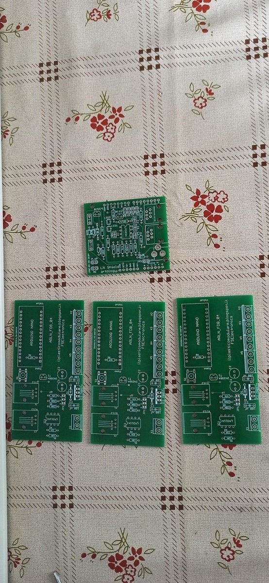 Anche io ho realizzato alcuni stampati di interfaccia Arduino/Loconet: Oramai con questi provider cinesi di PCB è veramente facile ed economico afre da se i corcuiti stampati.