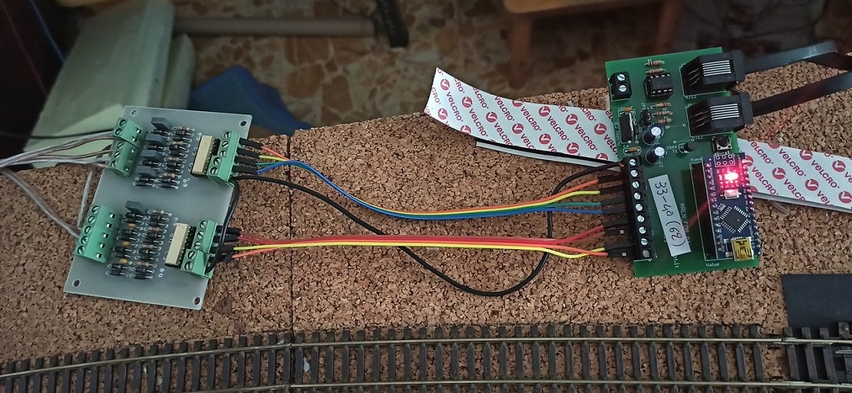 Ho anche svuiluppato il SW per sfruttare tutti gli ingressi Arduino facendo quindi un sensore a 16 ingressi. Sempre con le stesse librerie SW e con lo stesso PCB ho anche fatto un comando scambi.
