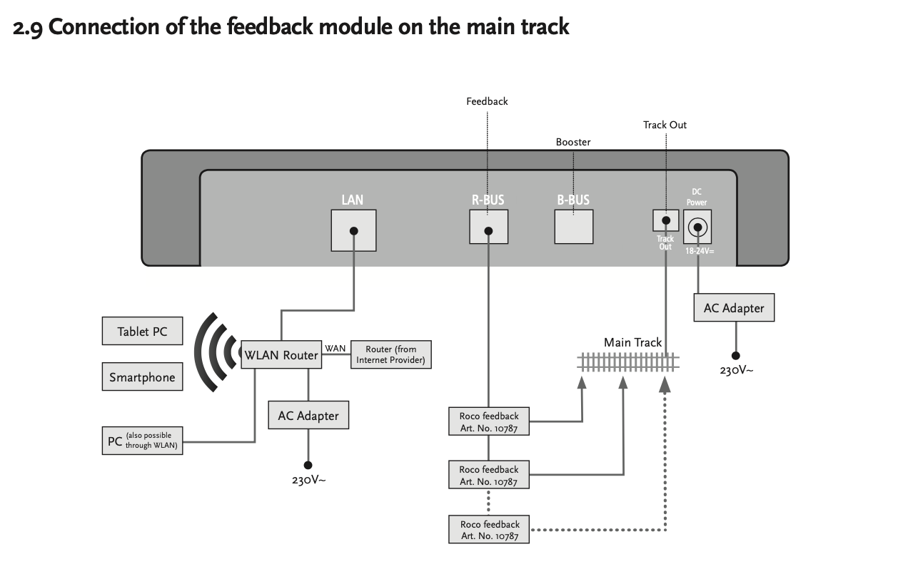 Centrale DCC (Es. ESU), moduli di feedback e moduli per i deviatoi.