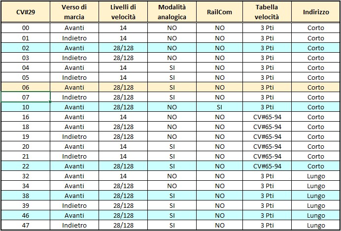 Impostando il valore 6, ad esempio, nella CV29 si hanno i 28/128 passi di velocità ed il funzionamento anche in analogico.