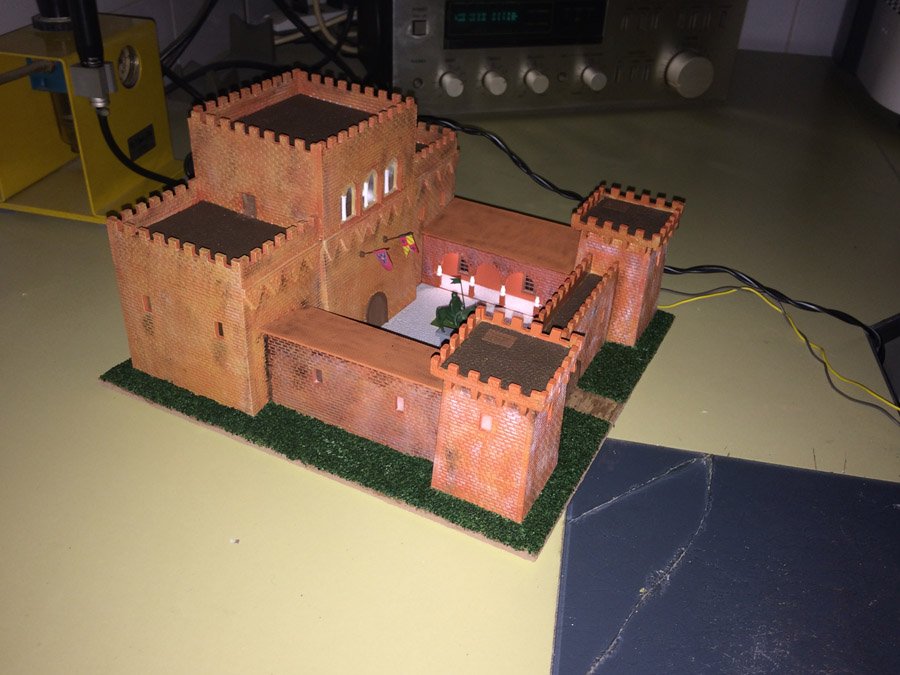 In questo caso ci dovrebbero essere dei fili nella struttura del modulo e sotto alla Rocca che una volta collegati con i jack portino la corrente per l'illuminazione. La somma di questi spezzoni di fili avrà una certa lunghezza che non dovrà intralciare in nessun modo il passaggio dei treni che transitano proprio li sotto.