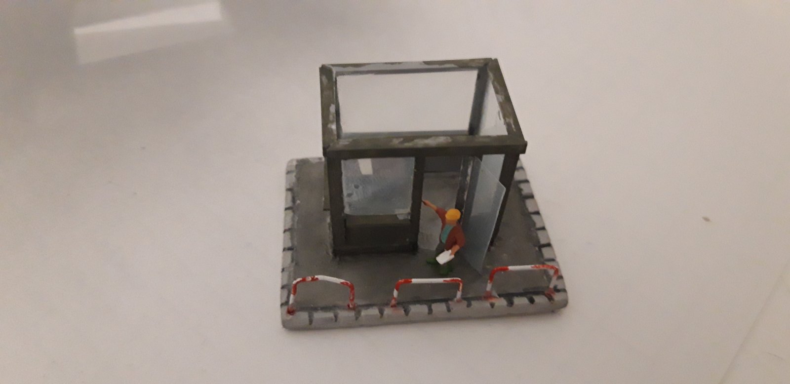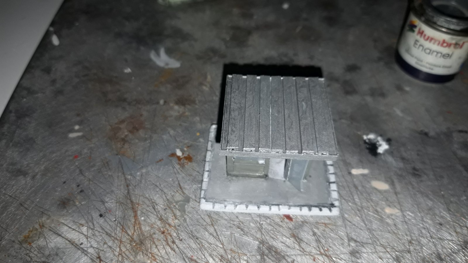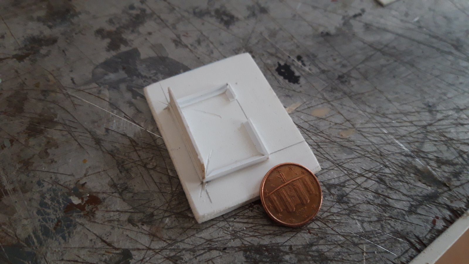 Ovviamente la base è forex al quale ho incollato degli angolari evergreen e plasticard. Poi ho iniziato a verniciare un po', creando anche le pietre marciapiedi ed incollado del acetato per le vetrate.