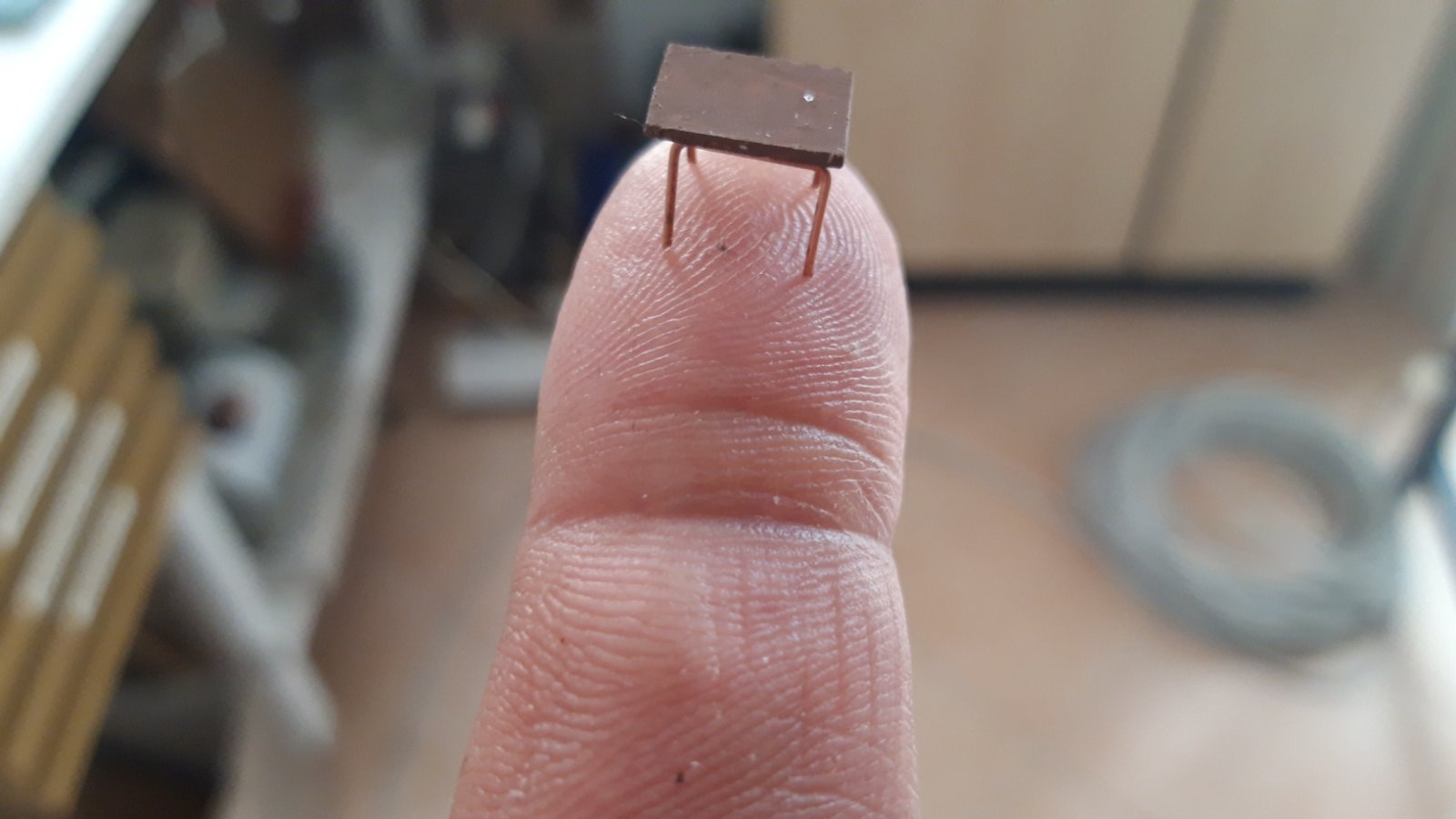Il filo di ottone è lungo fino ad oltrepassare la base del modulo. Sotto il quale saranno collegati i fili.