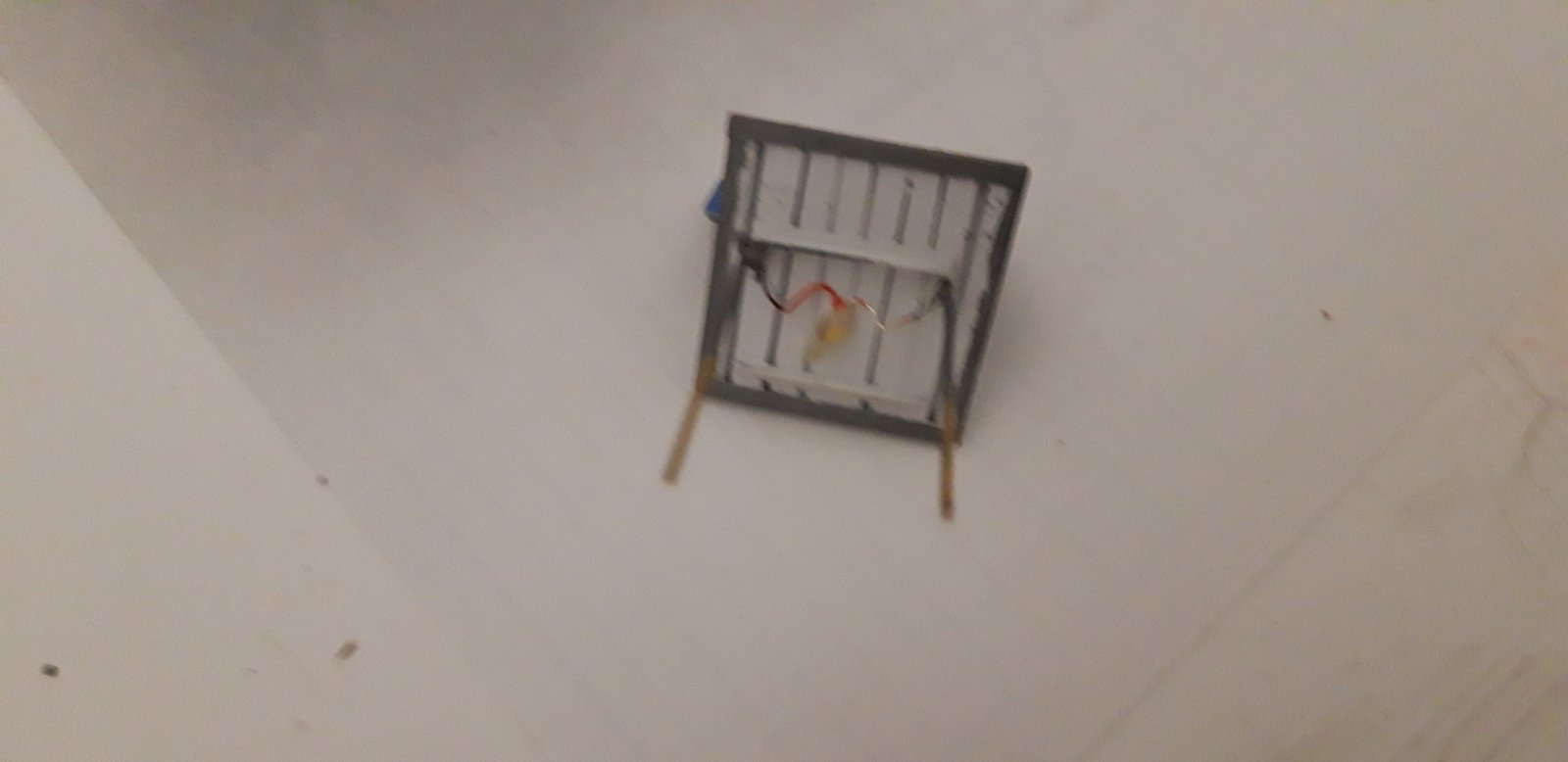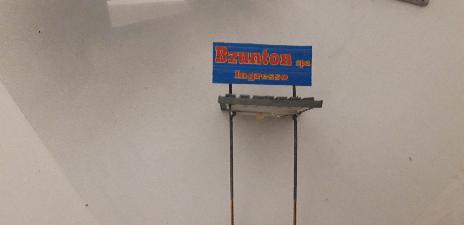 Ho quindi creato l'insegna e l'ho sorretta con filo di ottone da 0,8 mm, ai quali ho saldato un micro led bianco.