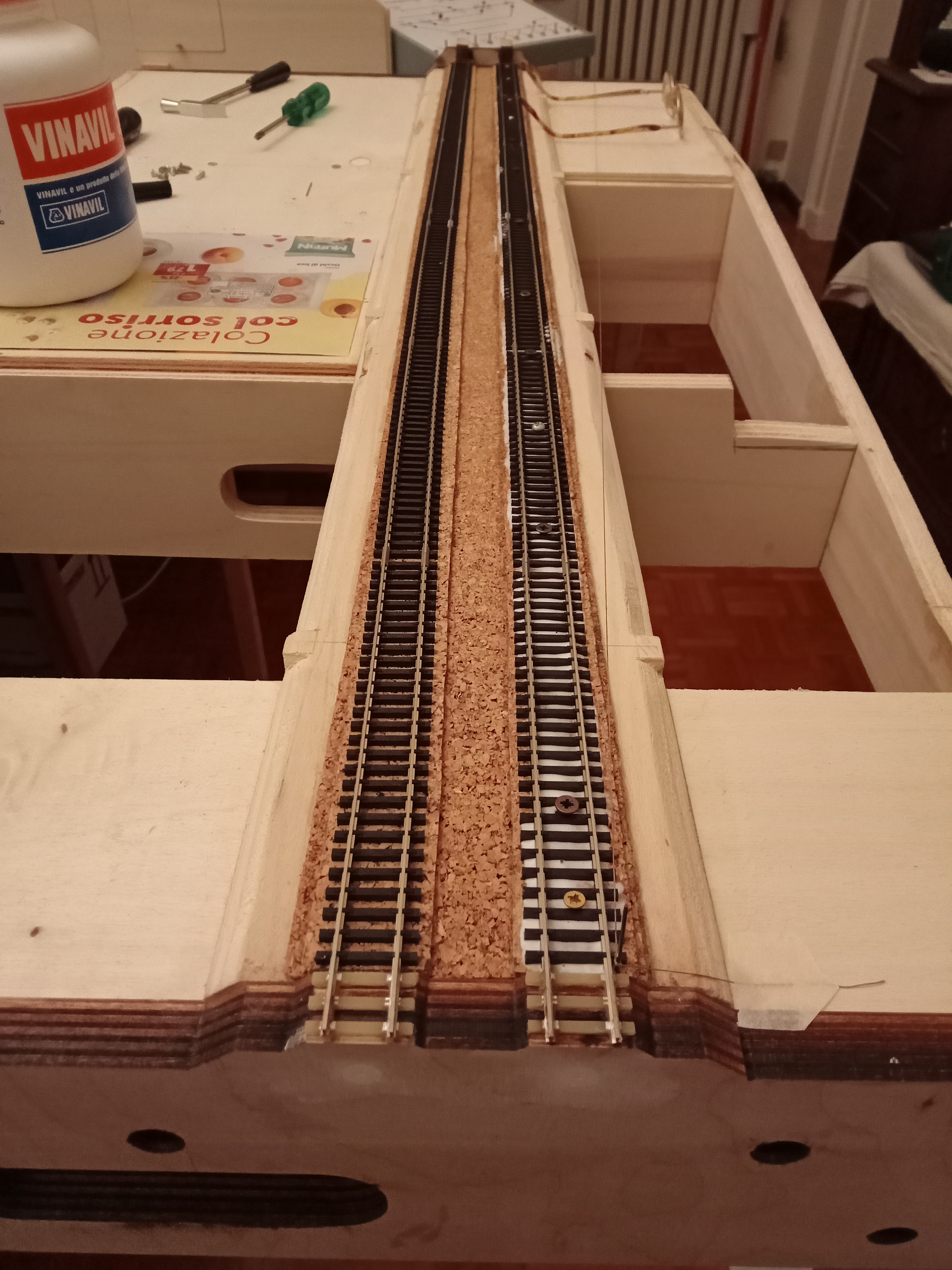 Il modulo è ancora in fase di abbozzo (qualche foto non rende bene perché si confonde con il mio plastico H0 presente nella stanza), devo ancora definire molti particolari ma pian piano prende forma, spero di postare al più presto altri aggiornamenti da condividere.