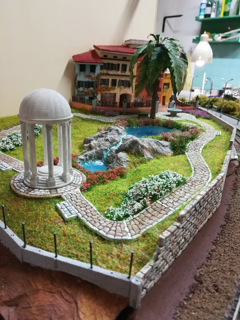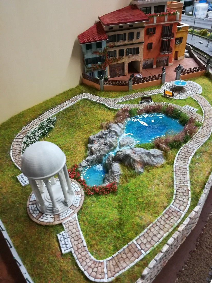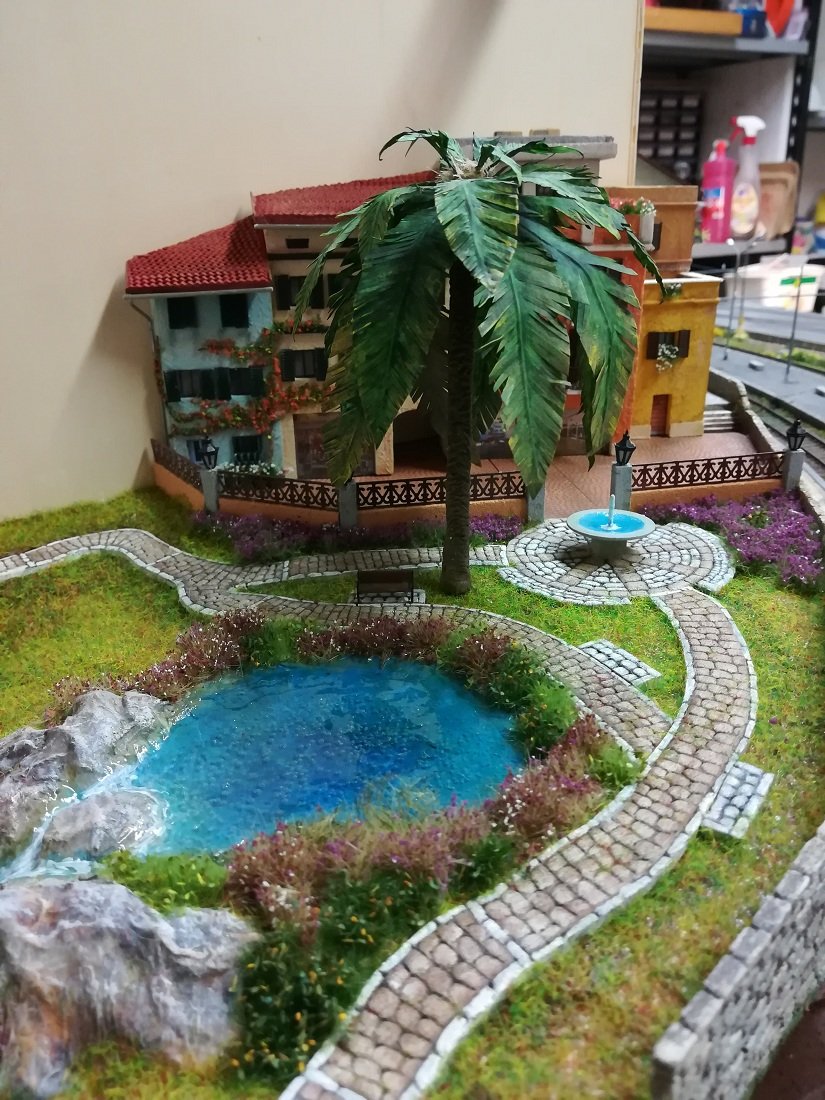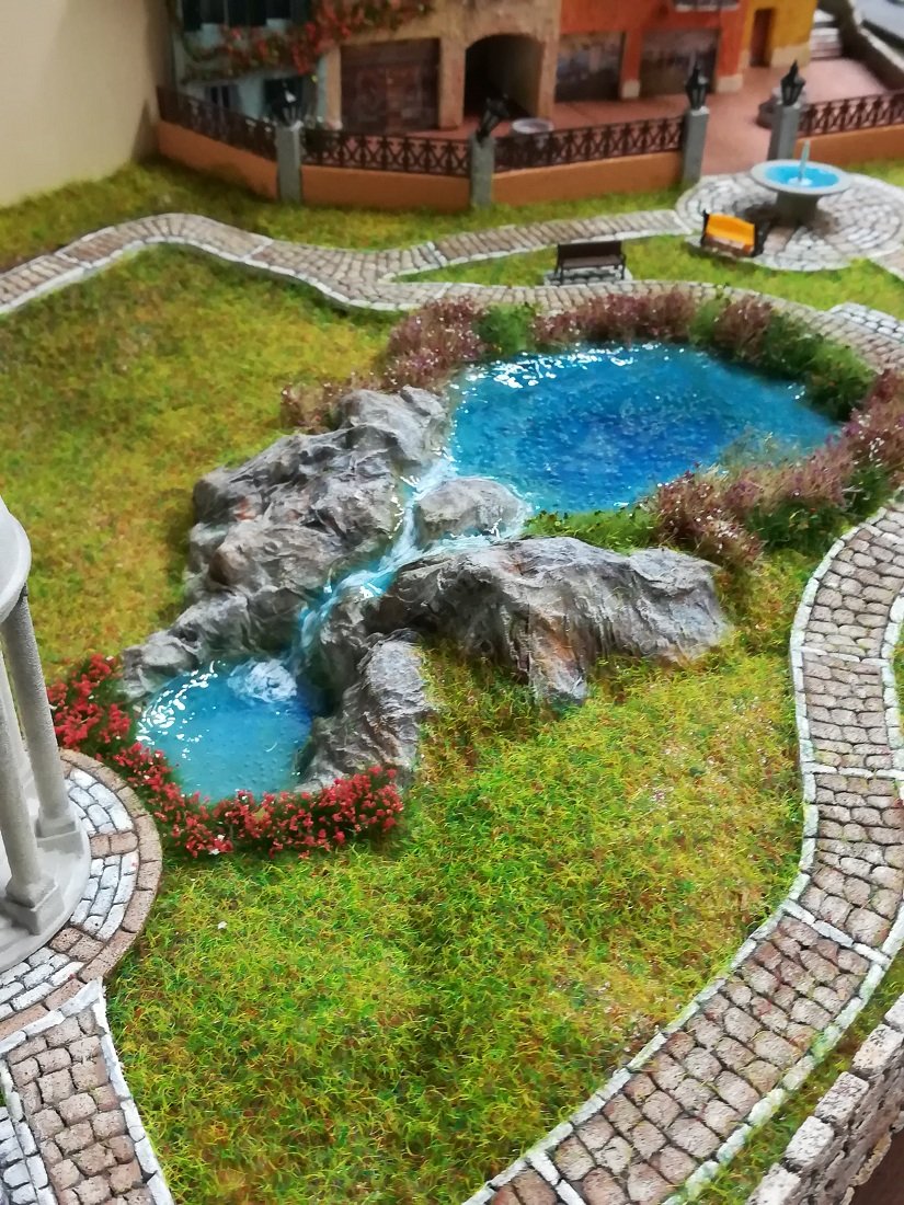 Il laghetto centrale e tutto il resto mi piace da morire, ottimi i camminamenti in gomma crepla, la colorazione bicolore la trovo azzeccatissima e la tecnica che mi avevi preannunciato nella mia discussione è veramente valida, complimenti anche per la riproduzione della tipologia di pietra, io avevo trovato difficolta a riprodurre le pietre regolari, il risultato non mi piaceva proprio, ora però vedendo il tuo risultato mi spinge a riprovare seguendo il tuo sistema, magari ne esce un buon lavoro, mi tornerebbe bene quando dovrò realizzare il mio borgo, chissà quando ma lo realizzerò