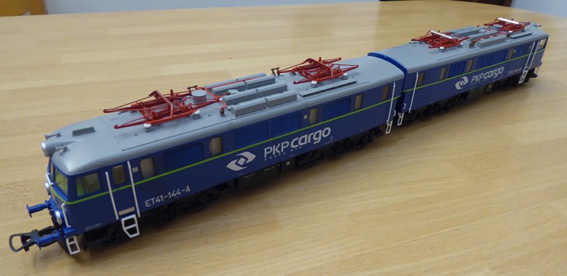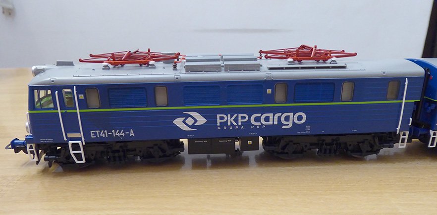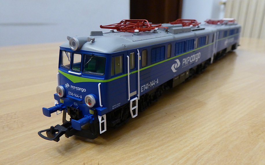 Uno dei modelli capolavoro che non volevo rinunciare , è stato recentemente questa imponente ET 41 PKP di Piko.. e sono stato anche fortunato essendo stato l'ultimo esemplare dal mio amico trenivendolo, ma sembra che non sia più disponibile nemmeno alla Piko . Al vero è una macchina prodotta a partire dal 1977 in 200 unità complessivamente , lunga 31 m. e del peso di 167 tonnellate, velocità massima 125 chilometri all'ora (78 mph ) Potenza in uscita 4.000 kW (5.400 CV) Sforzo di trazione 500 kN (110.000 libbre) . Il modello è contenuto dentro una pratica confezione in vaschetta di polistirolo, e meno male , diversa dal solito sistema di Piko che si sfila il modello lateralmente, qui invece con il classico coperchio dall'alto con finestra, della lunghezza di ben 48 cm e con un peso di oltre 860 gr !