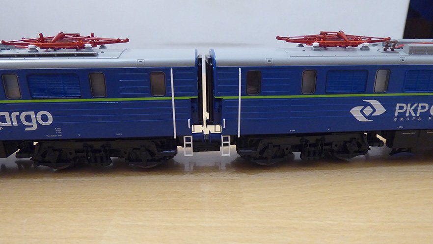 Una delle prime cose che balzano all'occhio , sono i pantografi , stupendi, di una finezza e piattezza mai vista prima ! Il modello fu prodotto anche un paio di anni fa, nella nomale livrea gialla e a due tonalità di verde, rapidamente scomparso visto il suo successo , personalmente preferisco questa Cargo in blu , più accattivante ; bellissimi anche i carrelli, splendidamente dettagliati, così come le griglie degli sfogatoi dell'imperiale ; l'unione tra esse è costitruito da un pratico sistema ad incastro a presa che se non ho compreso male , fa da tramite con la corrente elettrica, non ho provato a separarle, comunque mantiene un realistico e perfetto distacco tra le due locomotive ; il bilanciamento peso è alla pari tantochè sembra che anche l'unità B sia motorizzata . Sembra piuttosto agevole e veloce, volendo, anche la sua digitalizzazione , osservando le istruzioni . Non ho trovato indicazioni sui raggi di curvatura minimi che può girare, ma un modello così merita sicuramente tracciati parecchio ampi ed anche trazioni di notevole consistenza come al vero...